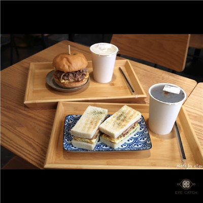 Ellen 朝晨商號 桃園文中店 難得姪女願意和我出門, 選這家早餐店是因為有幾樣餐點頗吸引我, 譬如炙燒焦糖蛋沙拉三明治和熱壓布丁奶酥吐司感覺姪女會喜歡! 結果小朋友喜好太難預估, 覺得她會喜歡的她都沒興趣, 最後點了一個出乎意料的堡 XD 客滿限時60分鐘, 內用低消每人一杯飲品, QR Code掃碼點餐到櫃檯支付, 現金或line pay! 許多配料可加價購, 不想要的調味料或配料像美乃滋小黃瓜花生醬高麗菜絲等亦能選減料, 彈性不小 點了雪花牛肉堡/炸雞腿蛋三明治/無糖高纖豆漿/朝晨紅茶; 豆漿不算很濃稠, 淡淡的蠻順口, 紅茶茶葉來自林華泰, 不可選甜度, 大概是微糖, 去冰的關係特殊茶香濃到有點澀 花醬雪花牛肉堡, 原本應有生菜, 但弟弟他們不太讓小朋友吃所以將高麗菜絲去除, 牛肉不少稍微需要嚼, 靠切達起司片還有花生醬提味 酥炸雞腿蛋三明治, 吐司烤到表面酥脆口感不錯, 雞腿排是傳統裹地瓜粉乾炸那種不是很大片, 小黃瓜存在感很搶眼, 美乃滋不會太多, 整體來說是樸實滋味 今日飾品: 純真鑽石 Love X 項鍊 6