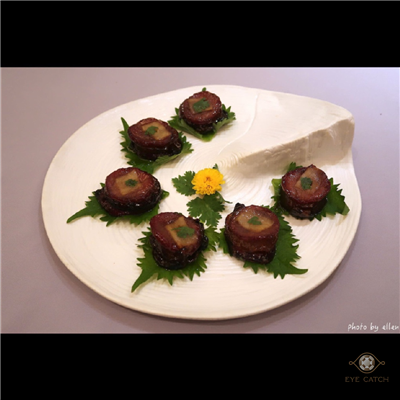 Ellen おうどん居酒屋 真ん中つるる 京都祇園 清水寺前先解決午餐, 選了一家位在祇園附近的烏龍麵居酒屋Mannaka Tsururu, 看名字有居酒屋三字不要以為僅晚上營業, 午餐也有開! 外國觀光客多的關係, 黑板菜單標示英文, 店員英文溝通亦不是問題 開放式廚房前有8個吧台座位, 裡面以4人桌為主, 料理檯掌廚皆為女性廚師, 簡約溫馨的氣氛~ 烏龍麵為主打, 看要湯麵沾麵冷或熱選擇不少 高湯用北海道昆布與鰹魚熬煮而成, 烏龍麵選用100%國產小麥每日手打現製, 無任何添加物, 自製高湯醬油可自行取用, 喜歡能買回家! 聽說調味料還有一個自家提煉的鰹魚油 點了: 炸起士魚餅, 炸里芋, 溫泉蛋熱沾麵, 招牌Tsururu烏龍麵; 兩樣開胃菜很下酒, 尤其起士魚餅意外好吃 招牌烏龍麵是和牛牛筋煮與豬肉角煮雙拼, 豬肉牛筋不少肥肉, 湯麵的湯卻非常清爽, 滿滿鰹魚香帶一點酸, 一口接一口喝光光 烏龍麵泡熱湯裡軟Q適中, 沾麵麵條相對來說更有嚼勁會吃到嘴酸, 喜歡有彈性的點沾麵, 想吃軟Q一點的選湯麵喔 ;) 今日飾品: Tiffany & Co. 羅馬數字鑽鍊 6