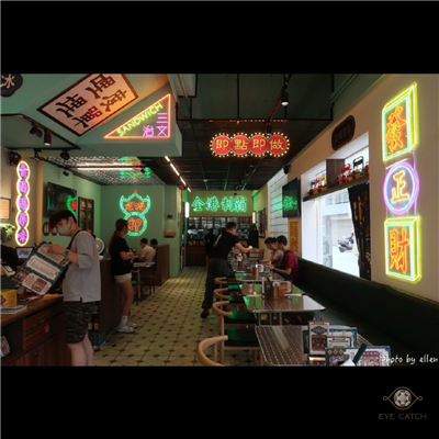 Ellen 三灣仔冰室 桃園藝文特區 港式茶餐廳 這間港式茶餐廳剛開沒多久在外送平台上線後我便點過一次, 外送品質不達預期可能很多因素所以還是想去店裡試試! 裝潢雖是茶餐廳卻摩登時尚, 桃園美生餐室復古雅緻, 三灣仔則是前衛新潮, 類似格局但完全不同的氛圍, 右邊成排桌椅左邊兩組卡式座位, 面牆適合單人的小空間, I人一個人來的話坐那裡有安全感 XD 中午滿座, 門外不少候位與外帶客人, 正餐過後等待時間相對少許多, 不是非得正午用餐的人建議避開尖峰時段! 入座掃碼點餐先至櫃檯付款, 需收一成服務費, 內用限時90分鐘 我們點了: 鹹檸七, 紅豆冰, 蠔油鳳爪, 春風得意腸, 蘿蔔糕, 一品海皇粥; 同場加映外送點的: 咖哩魚蛋, 蜜汁叉燒, 乾炒牛肉河粉, 經典豬扒包 印象深刻的有紅豆冰附一支紅豆冰棒, 蘿蔔糕有XO醬外, 向服務生要的辣醬是辣XO醬, 加分不少! 另外海鮮粥煮到半化接近粥糜狀, 鮮甜爽口無負擔, 蝦子殼非常好剝, 肉質正常好吃 今日飾品: 純真鑽石 Bubble II 手鍊 5