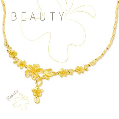 本款為純足黃金套鍊(項鍊一條),整體設計以多顆愛心層層相扣,線條柔和、立體感佳,佩戴時自然貼合鎖骨,適合婚禮、訂婚、迎娶等正式場合。