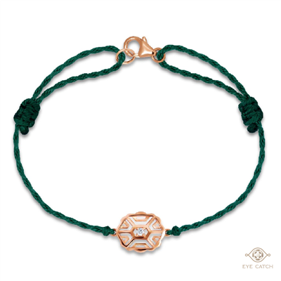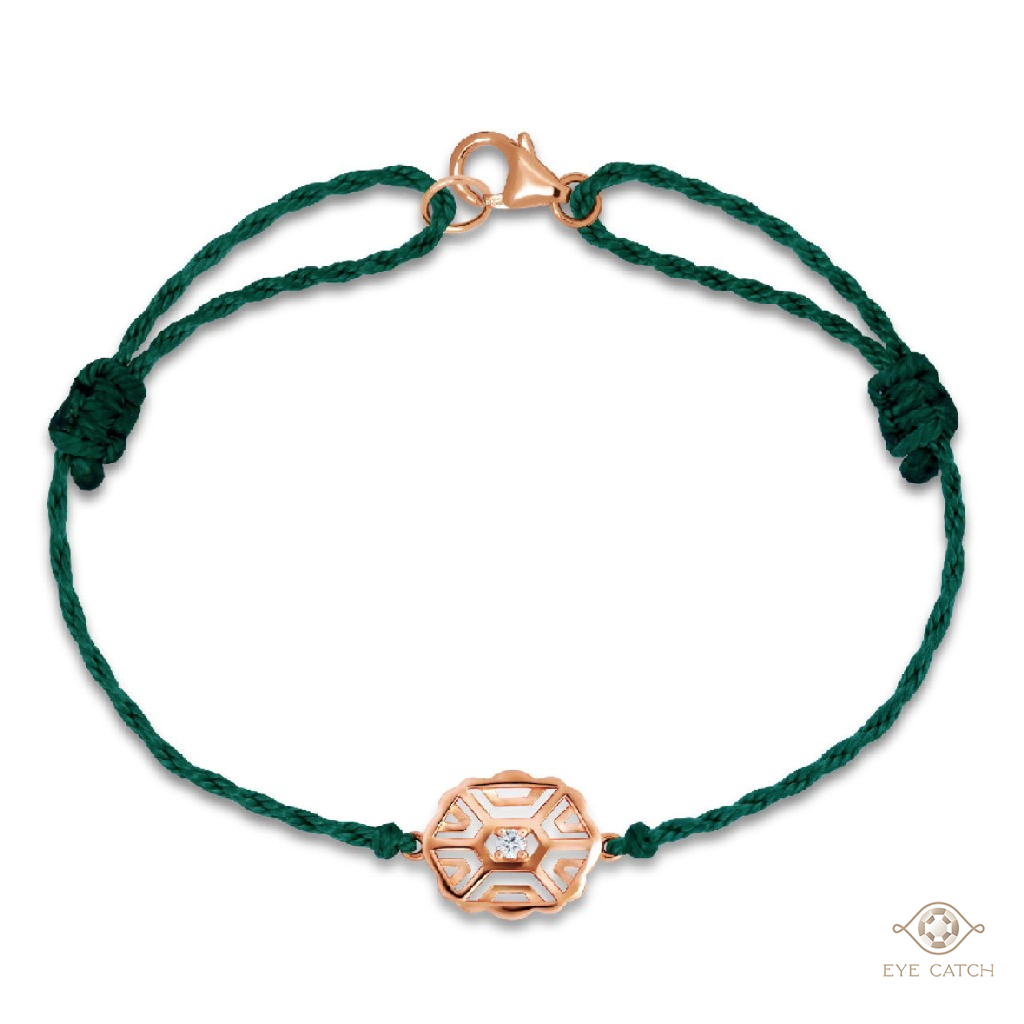 這款「鑽石手鍊 ‧ 聖筊」紅繩象徵喜慶、守護與好運,自古被視為納福的象徵。主造型材質玫瑰金色澤溫潤柔美,寓意溫暖與愛的守護;鑽石閃耀恆久,代表堅定信念與長久幸福。