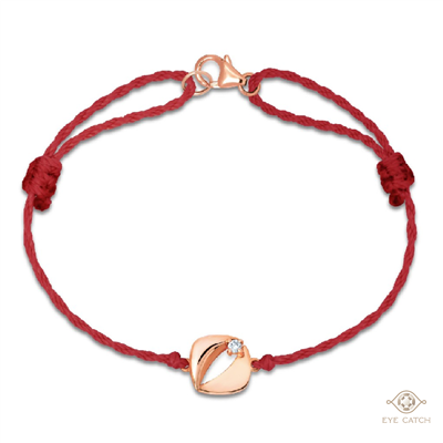 粉嫩手繩綁住溫柔心意,心形玫瑰金搭配小巧鑽石,像極了你眼中的那摸甜蜜之光。
