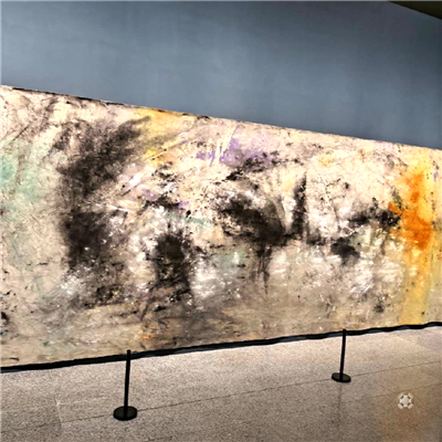 第一幅海上風暴的作品,遠看像是一艘孤舟在銀灰色的海中掙扎,近看卻發現那浪濤宛如巨獸的肌理,翻騰扭動,幾乎要伸手把船隻吞沒。
