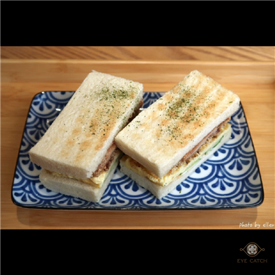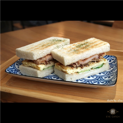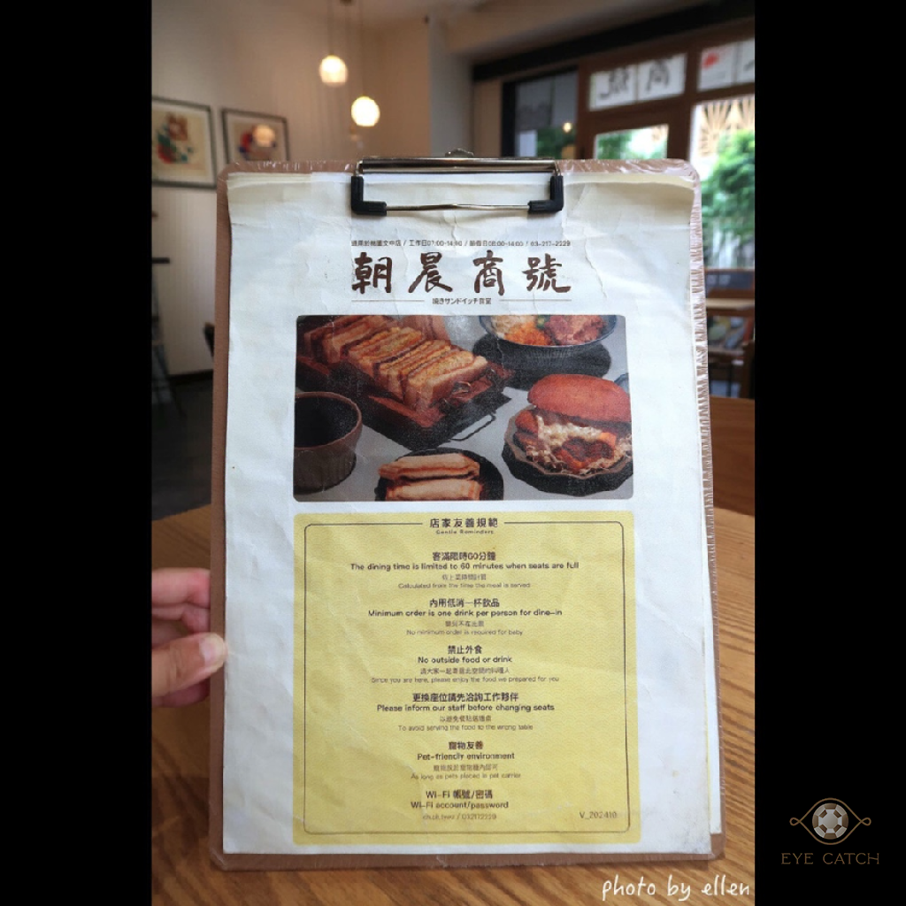 Ellen 朝晨商號 桃園文中店 難得姪女願意和我出門, 選這家早餐店是因為有幾樣餐點頗吸引我, 譬如炙燒焦糖蛋沙拉三明治和熱壓布丁奶酥吐司感覺姪女會喜歡! 結果小朋友喜好太難預估, 覺得她會喜歡的她都沒興趣, 最後點了一個出乎意料的堡 XD 客滿限時60分鐘, 內用低消每人一杯飲品, QR Code掃碼點餐到櫃檯支付, 現金或line pay! 許多配料可加價購, 不想要的調味料或配料像美乃滋小黃瓜花生醬高麗菜絲等亦能選減料, 彈性不小 點了雪花牛肉堡/炸雞腿蛋三明治/無糖高纖豆漿/朝晨紅茶; 豆漿不算很濃稠, 淡淡的蠻順口, 紅茶茶葉來自林華泰, 不可選甜度, 大概是微糖, 去冰的關係特殊茶香濃到有點澀 花醬雪花牛肉堡, 原本應有生菜, 但弟弟他們不太讓小朋友吃所以將高麗菜絲去除, 牛肉不少稍微需要嚼, 靠切達起司片還有花生醬提味 酥炸雞腿蛋三明治, 吐司烤到表面酥脆口感不錯, 雞腿排是傳統裹地瓜粉乾炸那種不是很大片, 小黃瓜存在感很搶眼, 美乃滋不會太多, 整體來說是樸實滋味 今日飾品: 純真鑽石 Love X 項鍊 6