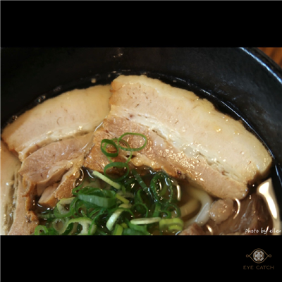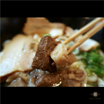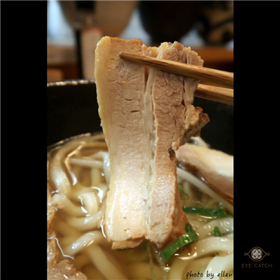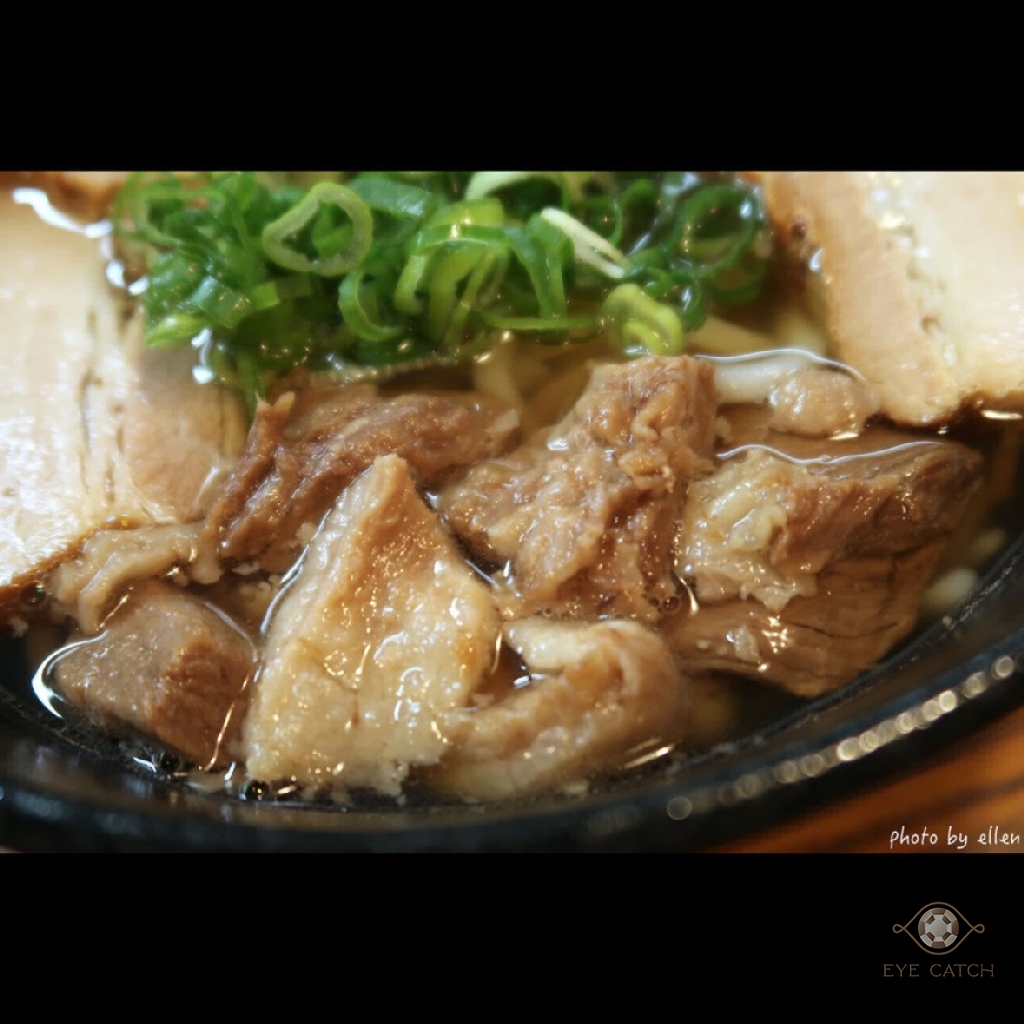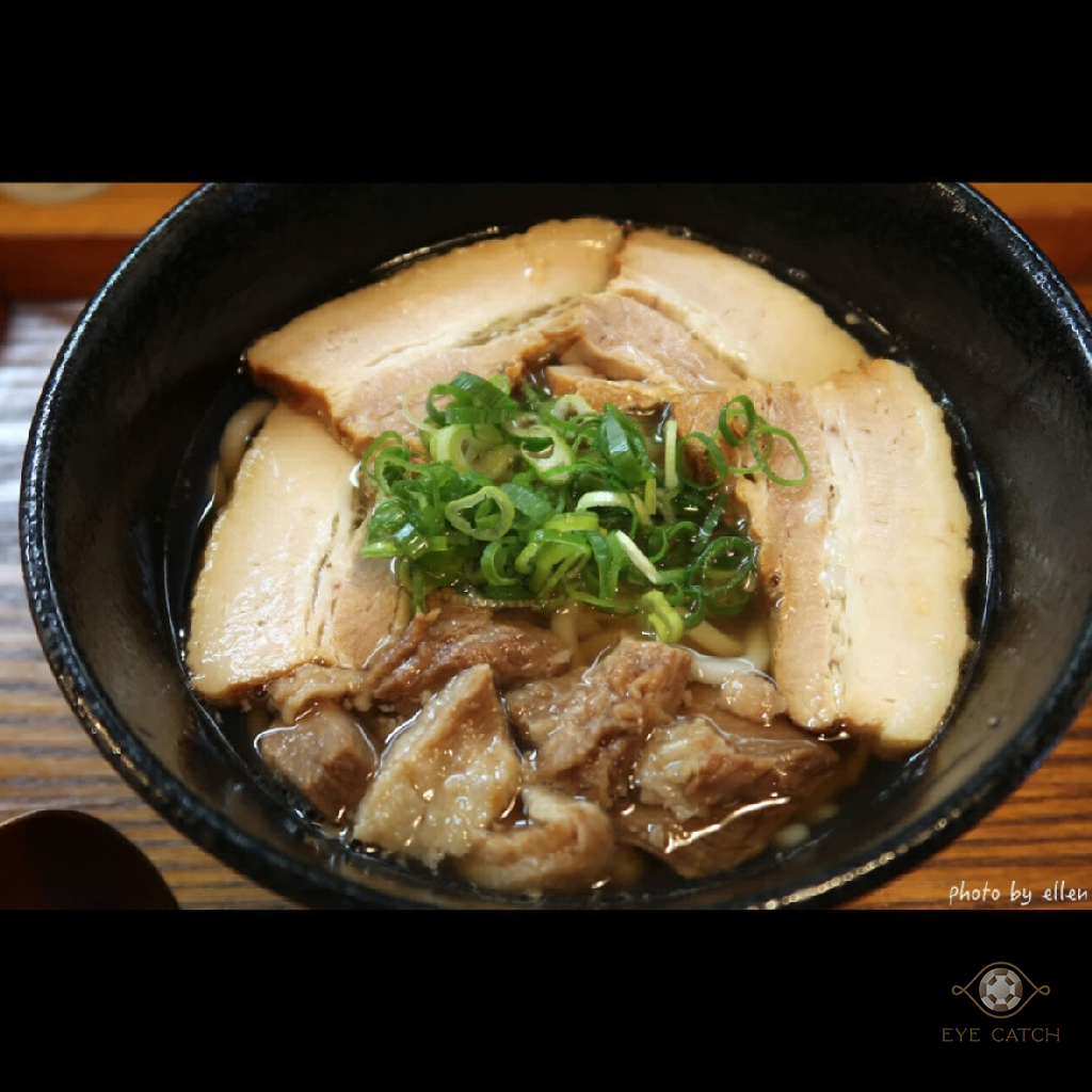 招牌烏龍麵是和牛牛筋煮與豬肉角煮雙拼, 豬肉牛筋不少肥肉, 湯麵的湯卻非常清爽, 滿滿鰹魚香帶一點酸, 一口接一口喝光光