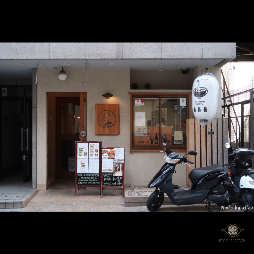 Ellen おうどん居酒屋 真ん中つるる 京都祇園 清水寺前先解決午餐, 選了一家位在祇園附近的烏龍麵居酒屋Mannaka Tsururu, 看名字有居酒屋三字不要以為僅晚上營業, 午餐也有開! 外國觀光客多的關係, 黑板菜單標示英文, 店員英文溝通亦不是問題 開放式廚房前有8個吧台座位, 裡面以4人桌為主, 料理檯掌廚皆為女性廚師, 簡約溫馨的氣氛~ 烏龍麵為主打, 看要湯麵沾麵冷或熱選擇不少 高湯用北海道昆布與鰹魚熬煮而成, 烏龍麵選用100%國產小麥每日手打現製, 無任何添加物, 自製高湯醬油可自行取用, 喜歡能買回家! 聽說調味料還有一個自家提煉的鰹魚油 點了: 炸起士魚餅, 炸里芋, 溫泉蛋熱沾麵, 招牌Tsururu烏龍麵; 兩樣開胃菜很下酒, 尤其起士魚餅意外好吃 招牌烏龍麵是和牛牛筋煮與豬肉角煮雙拼, 豬肉牛筋不少肥肉, 湯麵的湯卻非常清爽, 滿滿鰹魚香帶一點酸, 一口接一口喝光光 烏龍麵泡熱湯裡軟Q適中, 沾麵麵條相對來說更有嚼勁會吃到嘴酸, 喜歡有彈性的點沾麵, 想吃軟Q一點的選湯麵喔 ;) 今日飾品: Tiffany & Co. 羅馬數字鑽鍊 6