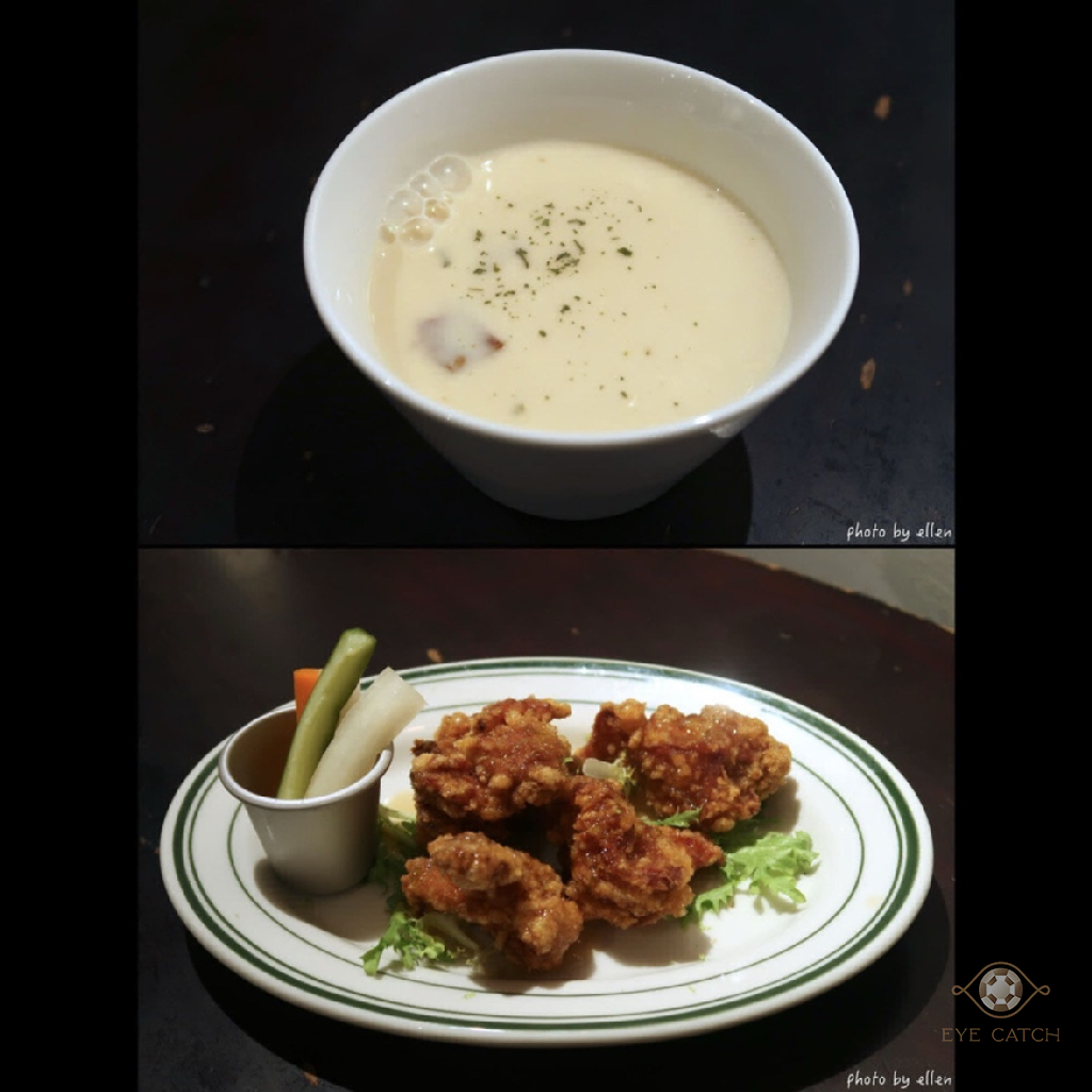 Ellen 青春漢堡 Aoharu Burger (台北) 曾被台中朋友帶去吃田樂漢堡, 對其早午餐品質有一定信心, 青春漢堡是田樂創立的新品牌, 從台中往北拓點, 在台北世貿附近和新店裕隆城陸續開店後, 目前台中店暫停營業 世貿店在一棟大樓旁邊通道盡頭平房, 室外座位有氣氛, 內用空間狹長, 掃碼點餐, 櫃檯結帳可付現或line pay, 低消每人一份餐點或飲品, 有服務費 漢堡義大利麵米食可選擇搭配套餐組合, 甜點飲料可補差額換其他餐點, 我們點了漬檸檬與枝仔冰/青春檸檬飲/糖漬檸檬龍田炸雞/塔塔蛋黃醬天婦羅炸蝦堡/松露味噌牛肉漢堡排飯與酥炸蕈菇/大人味白蘭地焦糖布丁/芒果香緹卡士達泡芙 當初就是被漢堡排給吸引, 滿滿松露味噌醬還有炸蕈菇都是我愛的, 漢堡肉排軟嫩多汁肉香濃厚, 松露醬奶味重吃多易膩, 不過配著炸蕈菇和旁邊附的蔬菜與米飯還是吃光光 ;) 布丁軟嫩, 奶香與蛋香淡淡, 焦糖醬裡加了白蘭地且煮得偏苦, 而芒果泡芙是當季甜點, 除了香緹鮮奶油還有質地偏稠的卡士達, 點綴的堅果碎和芒果塊非常加分 今日飾品: Chanel Vintage項鍊 8