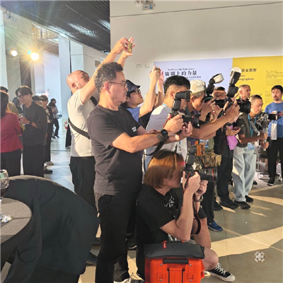 而媒體區更是熱鬧,記者們像獵人一樣全神貫注,手上的快門聲此起彼落,閃光燈打在主視覺板上,一整個紅毯氛圍拉滿。