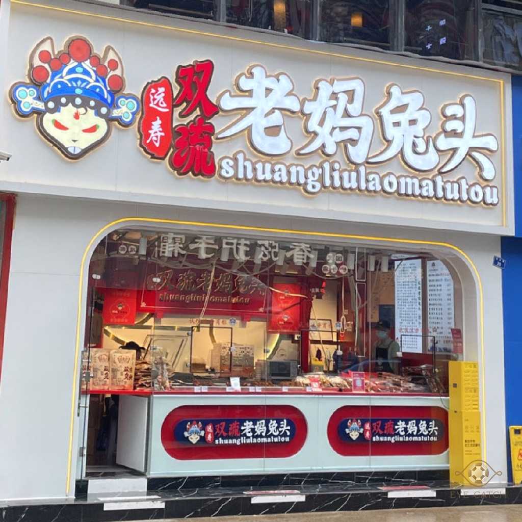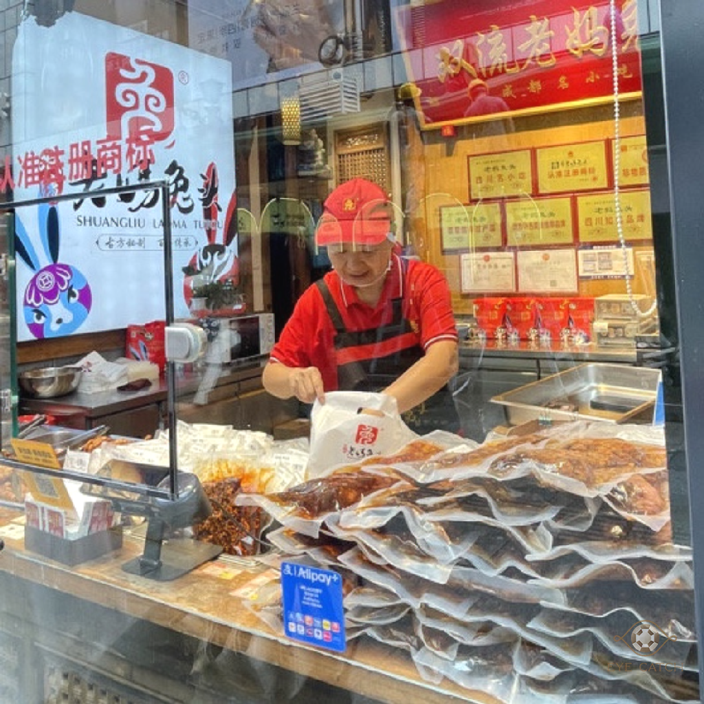 這家「雙流老媽兔頭」可是當地的傳奇品牌,一整排的兔頭像是整齊列隊的「美味士兵」,每一顆都滷得油亮亮、香氣撲鼻。