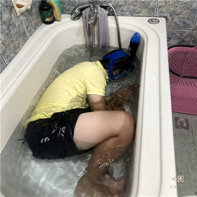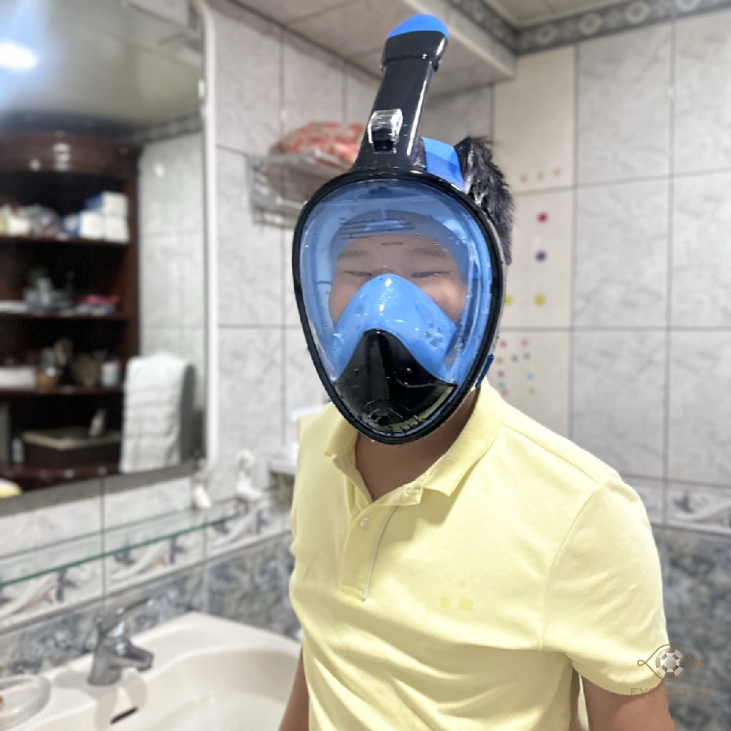 接著換上「浮潛面罩」—在浴缸裡進行高規格測試,呼吸順暢、防霧又防水,整個人彷彿潛進太平洋(雖然實際只在家裡廁所)🤣🤣