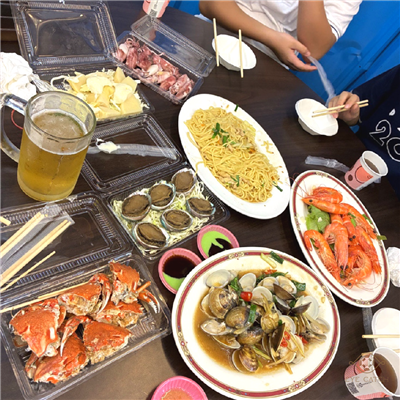晚上逛老街,吃海產店,啤酒、炸魚、烤蝦、烤生蠔、螃蟹山在呼喚我,那香氣根本犯規啊!一邊吃一邊被人潮包圍,熱鬧得像電影現場,哈哈