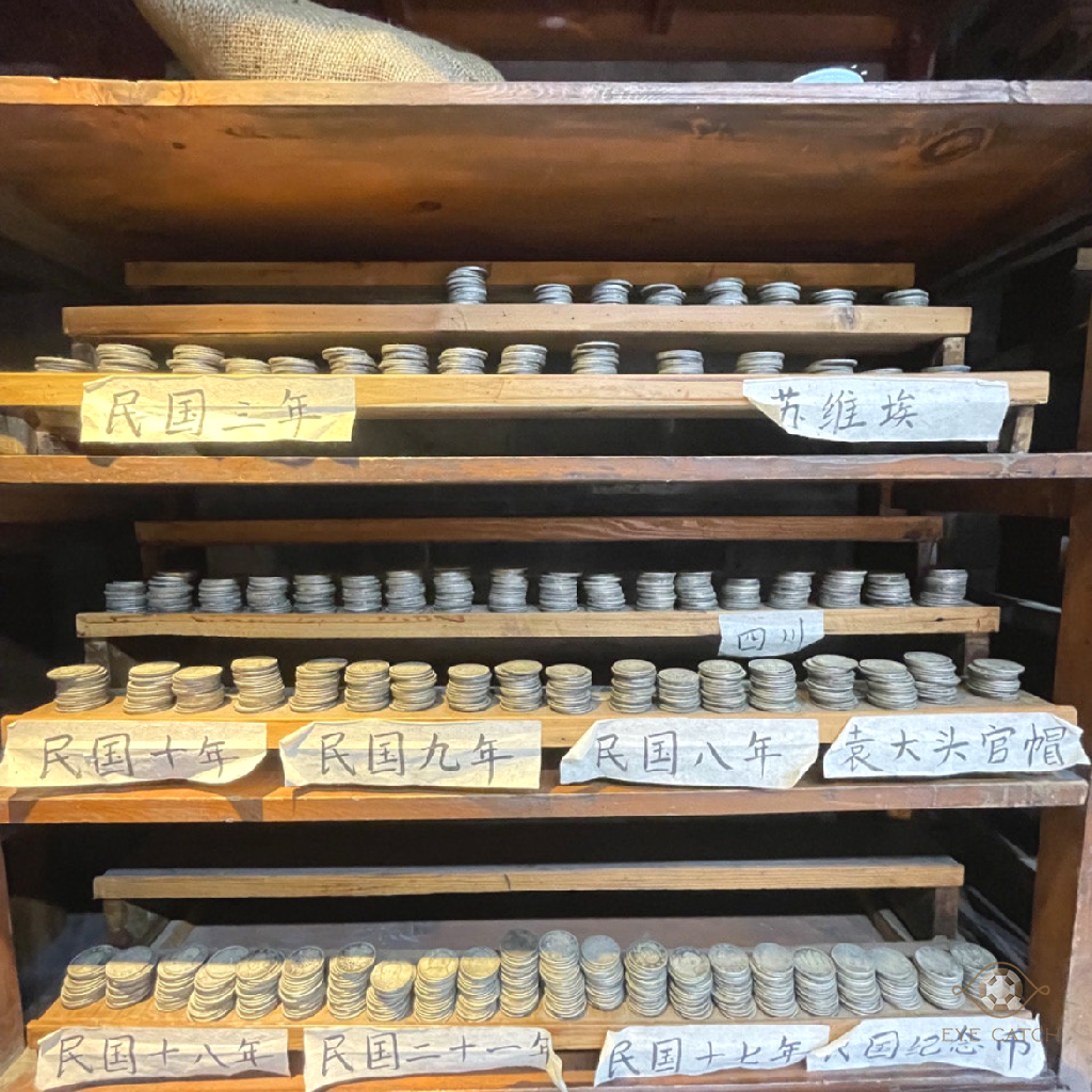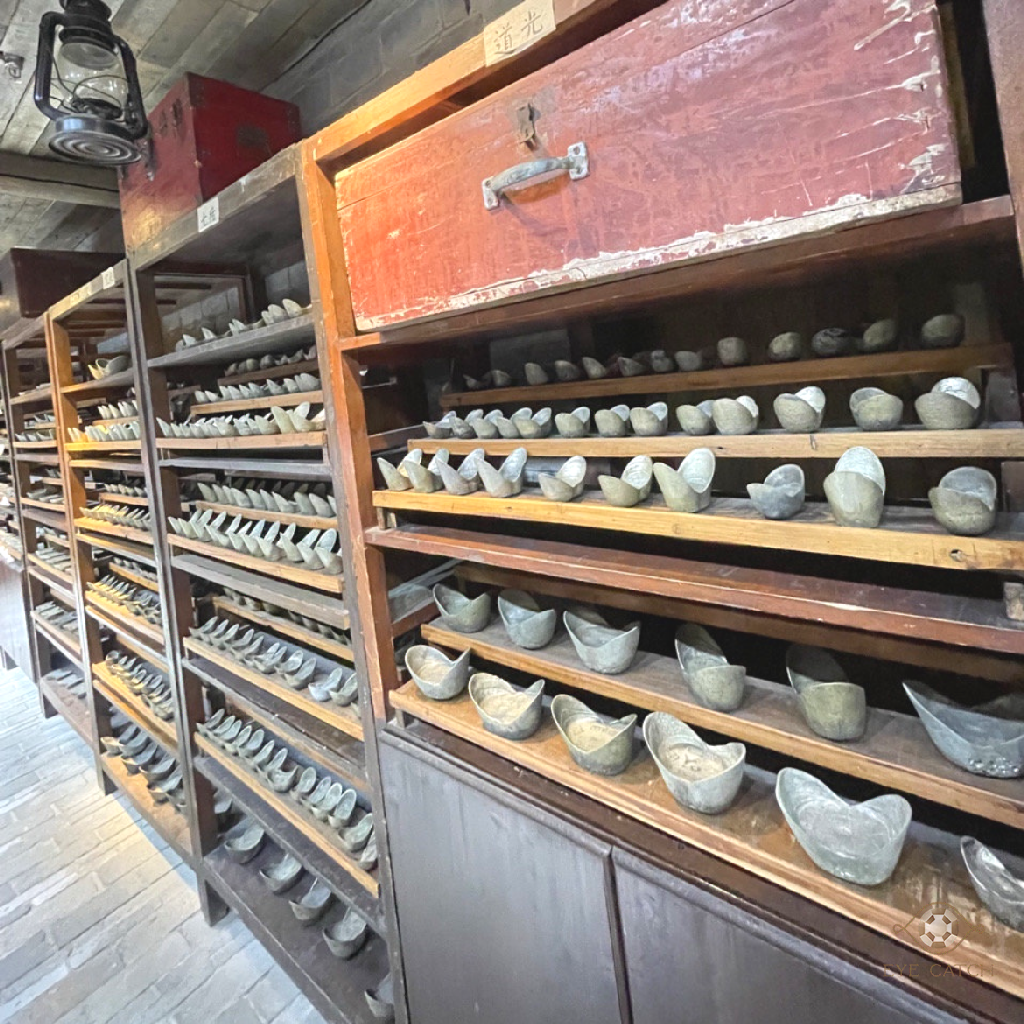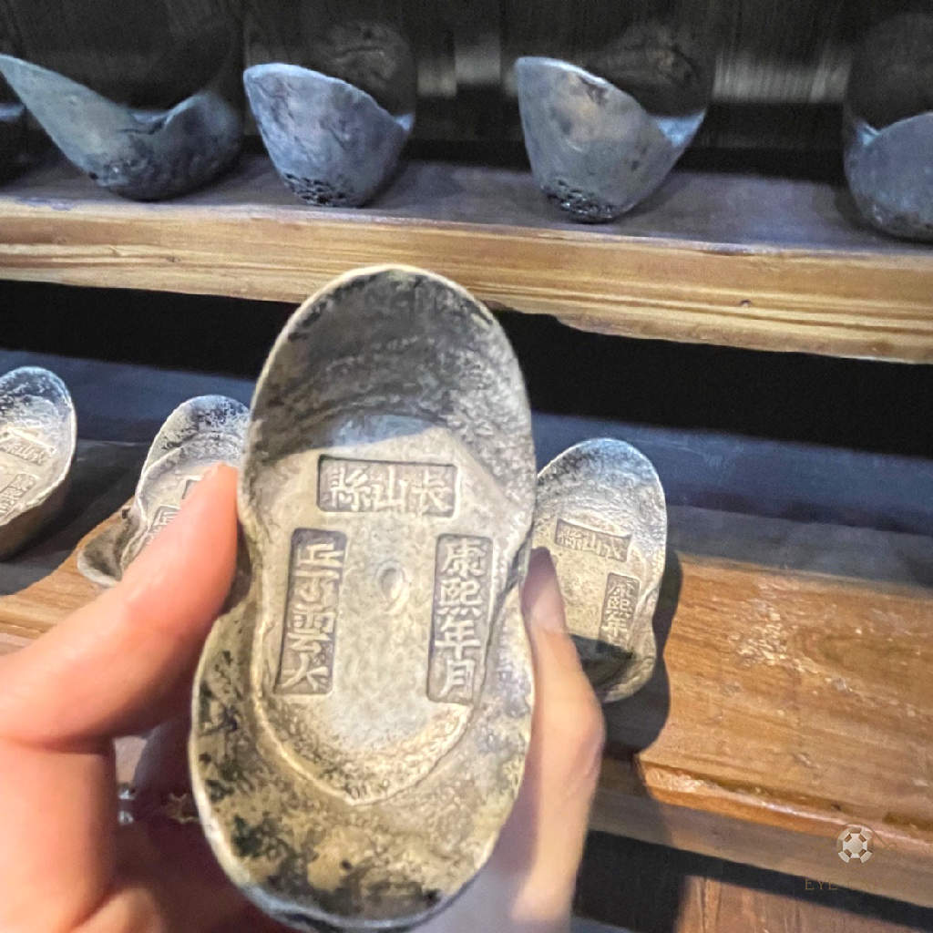 來古銀庫會有種「財神爺附體」的感覺,哈哈,尤其看到一排排元寶,忍不住想大喊一句:「發財啦~」🤣整個空間還原得相當考究,桌上擺著帳本、秤錘、朱筆,讓人彷彿成了古代少城的會計官。