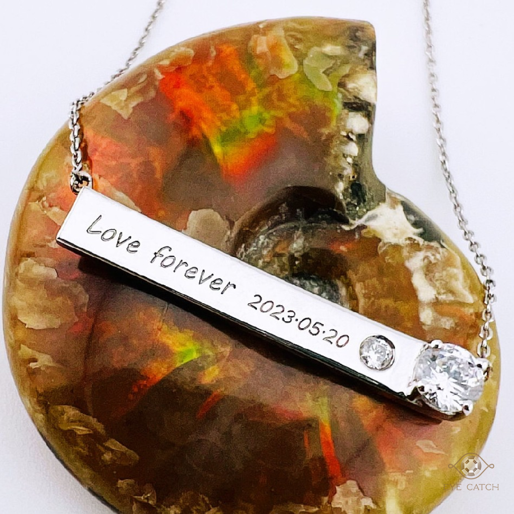 寶石小姐 刻字項鍊 摯語 I【白/彩鑽】 每次只要戴上「刻印.愛」系列,我的內心就會默默發暖,引人共鳴的設計怎麼可以如此深情又節制,即便沒有雕花鏤刻,也能清楚傳遞你我那份柔軟的悸動。 今天為大家帶來此系列中的「摯語I」鑽石項鍊,據說它是櫃上詢問度超高的長賣款之一,總能一秒就將人帶往心中念想的幸福時空。 對我來說,PURE DIAMOND的「摯語I」就像是個暖陽,柔美的圓弧曲線好似圈住所有晨曦,曙光記下你我最真摯的心意,提醒我們要時刻銘記愛的細語。 設計上,霧面金屬的溫潤光澤緩和了主鑽的刻面折射,讓整體呈現既溫柔又銳利的層次反差,在寬厚的圓弧框線下,氣勢十足,視覺張力倍增。 此款項鍊的客製刻字既別出心裁,又充滿儀式感,每次佩戴都像是一次情感的重申,要我們把愛意再次點亮! 7