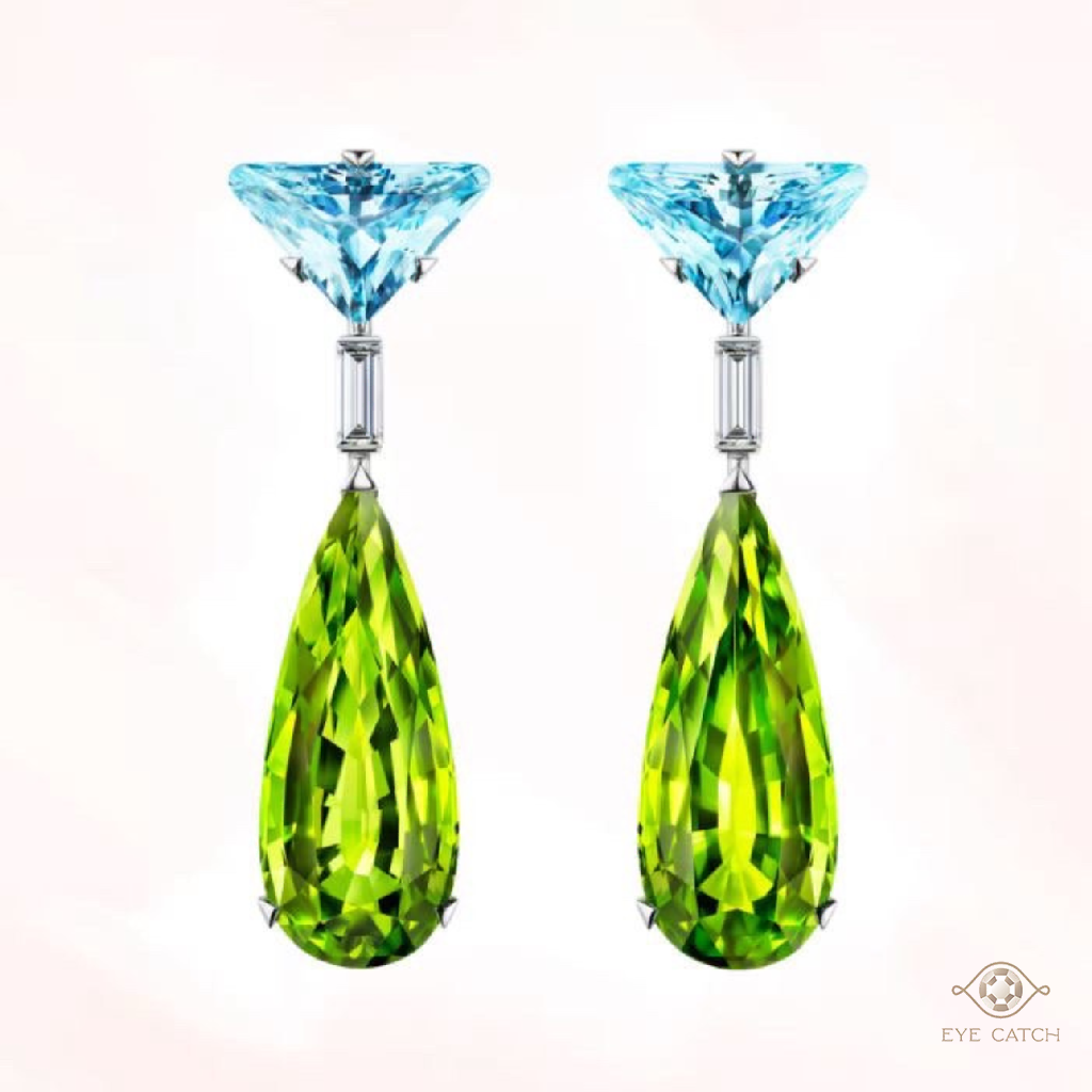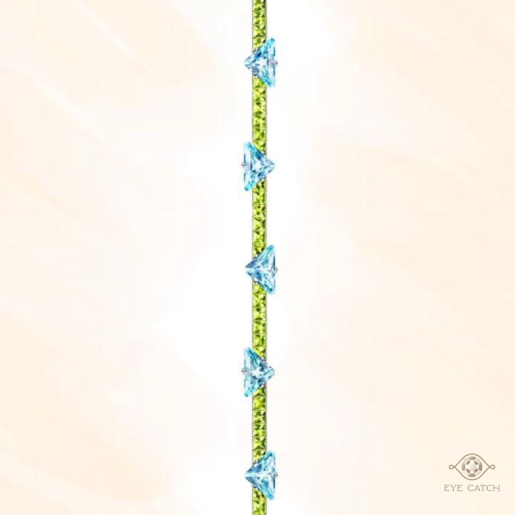 整個系列以品牌標誌性的三角形做為切割形體,並甄選紫水晶、海藍寶石、馬德拉黃水晶等非傳統寶石,透過對比色彩與不對稱設計,挑戰傳統珠寶觀感。