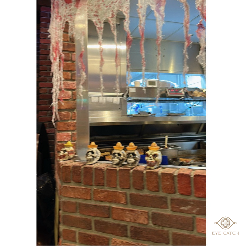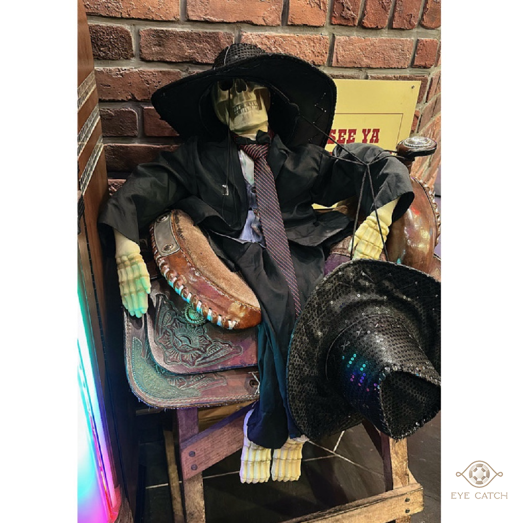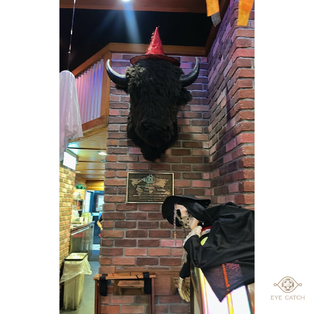 今晚的氣氛超嗨!整間餐廳布置成西部鬼城風,骷髏、南瓜燈、星光頂棚交錯出熱鬧的節奏。