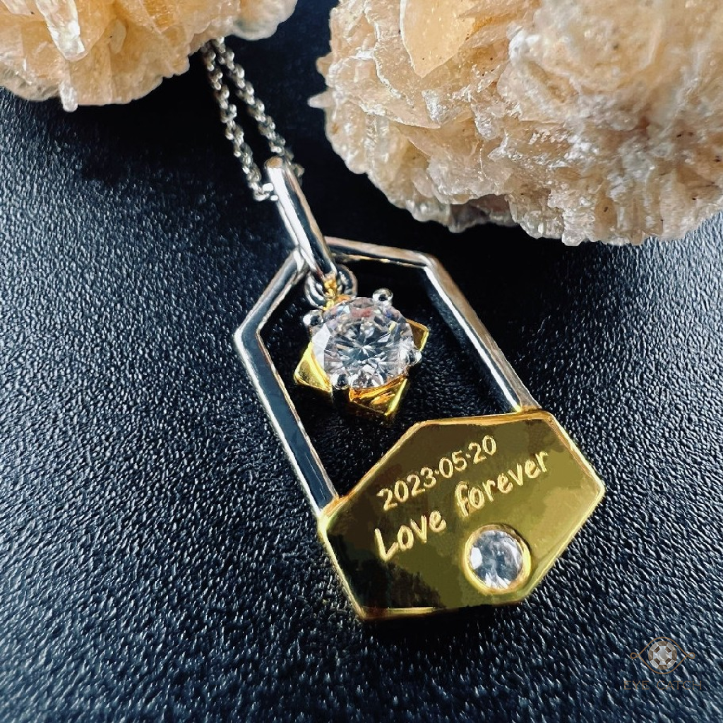 寶石小姐 項鍊 拼湊【白/彩鑽】 以獨特六角形為設計核心,簡單有力的款式之下,藏有不簡單的美學詮釋,Pure Diamond「拼湊」鑽石項鍊宛如一封情書,向截然不同的我們直球告白。 「拼湊」絕對是一款具有高度存在感的前衛單品!自帶鋒芒的六角造型,搭配飾以圓珠、方塊、直線等的雕紋外框,鮮明層次躍然而出,一入眼就能引發震撼,讓作品充滿如雕塑般的動感與生命力。璀璨美鑽上下呼應,讓簡潔流暢的時尚設計,更添點滴細節。中心可自由刻字,大面積的鏡面留白,讓人一眼就感受到愛的輪廓。 人與人之間的情感聯繫,需要相互搭配、共同成長,才能完整「拼湊」出愛的樣貌,真正的愛情,會讓彼此成為更好的自己。 無論你從哪個角度看,「拼湊」鑽石項鍊都是那麼俐落吸睛,大小不一的鑽石,似是個性迥異的我們心心相印,在新穎又多元的設計中,展現強烈卻不張揚的風格。 6