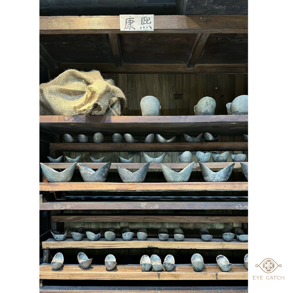 最吸睛的,是屋內那間古銀庫~不同朝代的皇帝各自鑄造銀錠,紋飾、重量、字樣都各有章法,像一場真實的「帝王貨幣展」。