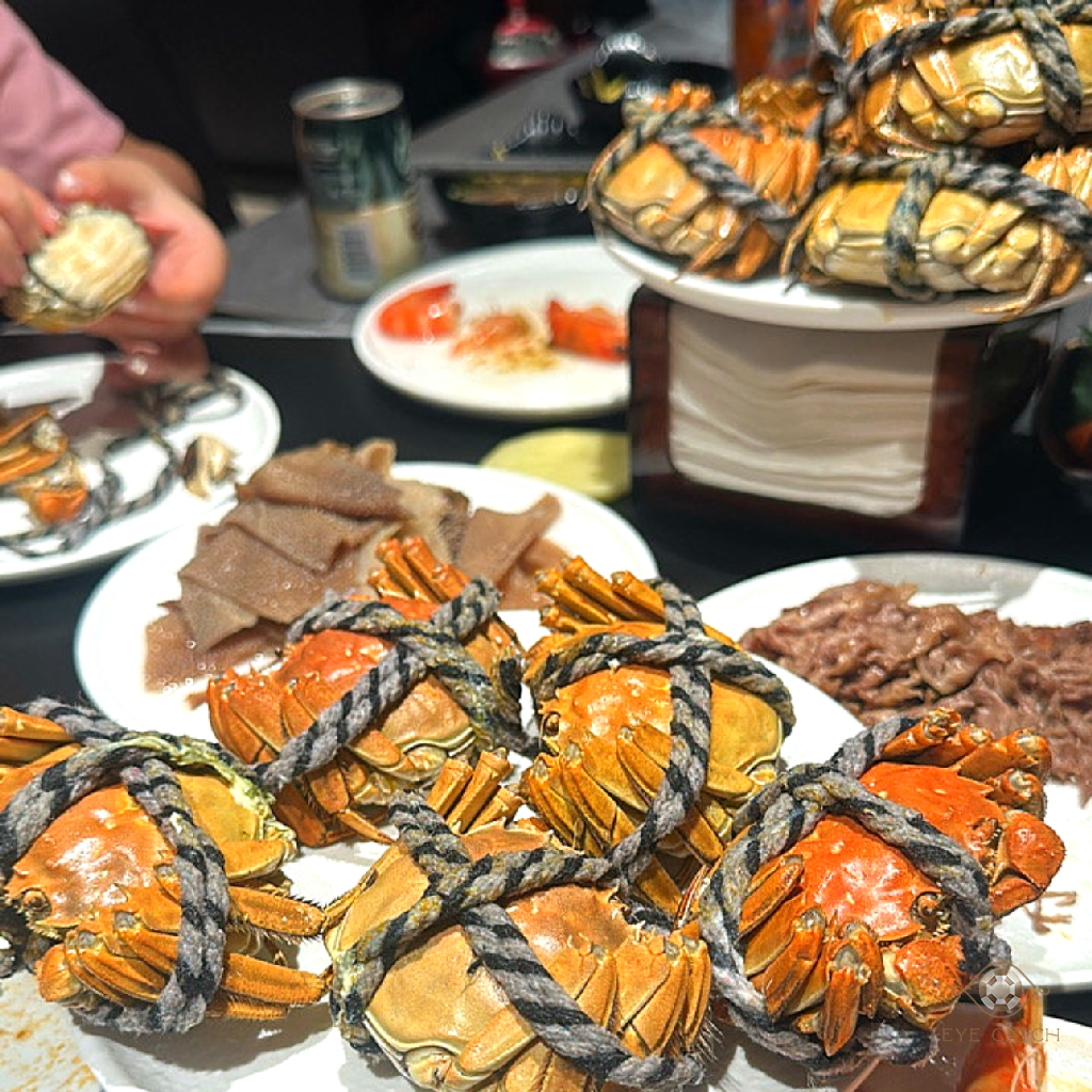 泡熱湯、麻辣火鍋,桌上堆滿吃不完的水果盤、大閘蟹和24小時供應的點心。更誇張的是,旁邊還有電動遊戲區、水果吧、酒吧、電影院、以及全天候開放的按摩與搓澡療程,想放鬆、想狂歡、隨時續攤都能一次滿足。