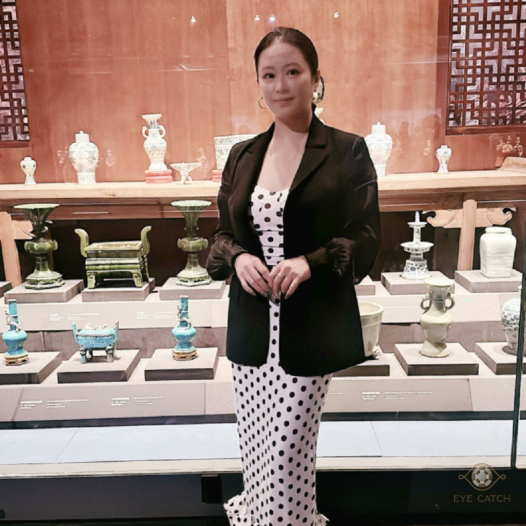 這套新洋裝穿起來不只是優雅,還有種「今日我才是主角」的氣勢。配上翡翠手鐲和項鍊,剛好一柔一剛,完美平衡高貴與靈氣