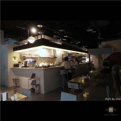 全天營業下午無休, 避開正餐時間選在下午來, 店裡充斥著香料香氣, 開放式廚房與吧台座位, 其餘皆是兩人桌, 類工業風裝潢以灰色為主, 連餐桌都貼了一層金屬片, 回家看照片才發現金屬反光嚴重, 顏色偏差好大 ^^”