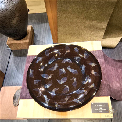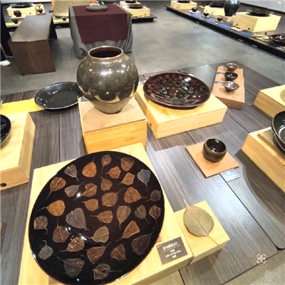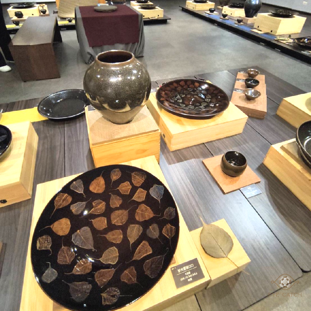 大阪根溫泉會館有個讓人沉靜的展覽,展間裡的每一件天目茶碗、木葉盤都閃著細緻光澤,像是把宇宙星河都收進陶土裡。
