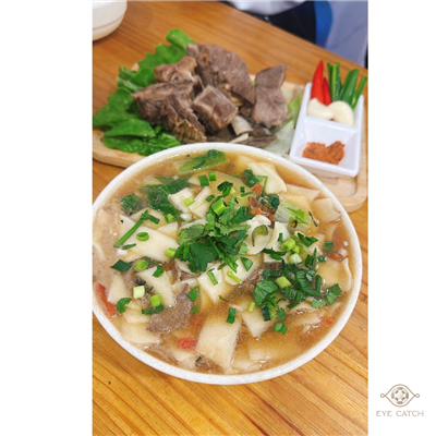 牛肉湯飯表現中規中矩,暖胃好入口;最驚艷的是「牛肉麵片」!純手工麵片超有彈性,一口咬下去那種QQ彈彈的勁道兒,搭配吸滿湯汁,每一口都好滿足。