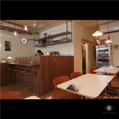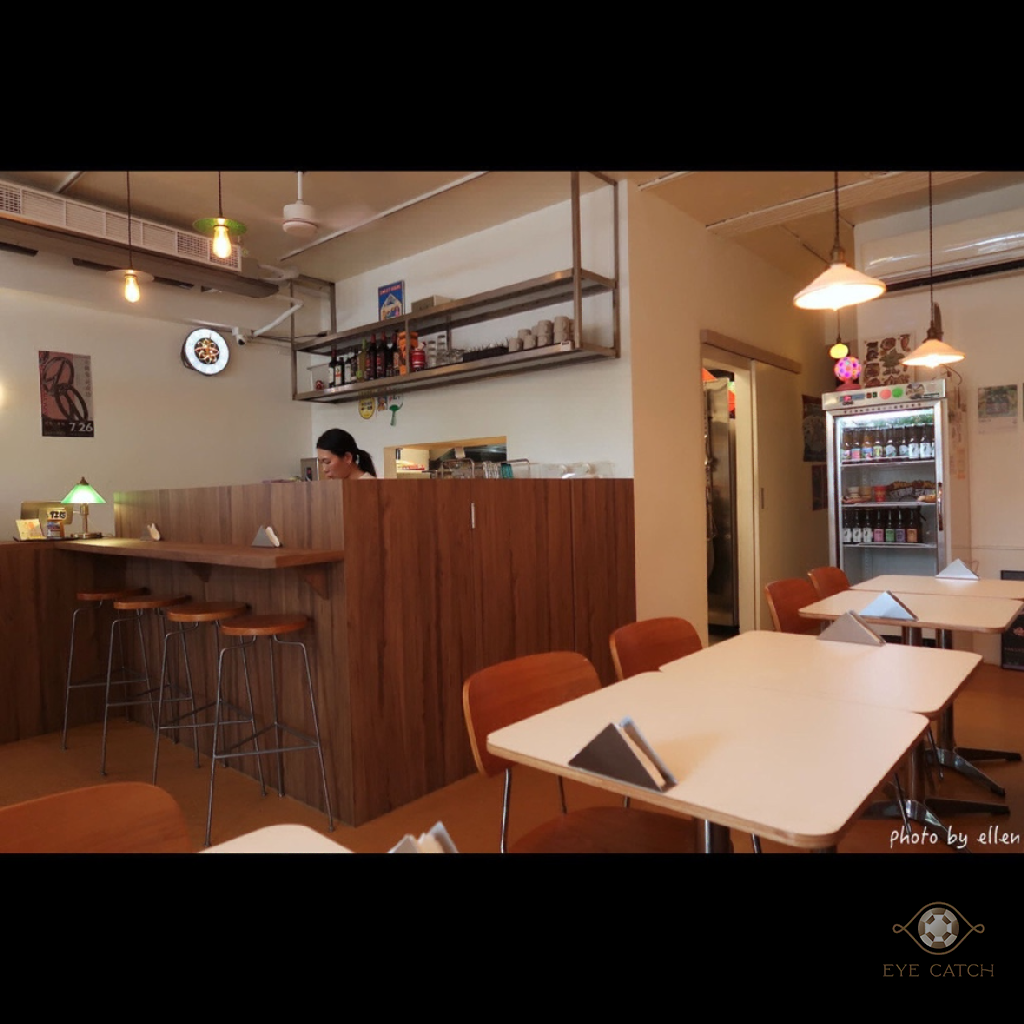 不要看店外觀很像普通簡餐咖啡店, 裡頭裝潢氣氛不錯, 大部分客人坐在類包廂, 布簾放下隱私好, 我沒訂位只能坐在右側開放式座位區, 不過一個人坐一張四人長桌倒是寬敞, 牆側插座可用, 客滿會限時120分鐘