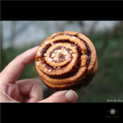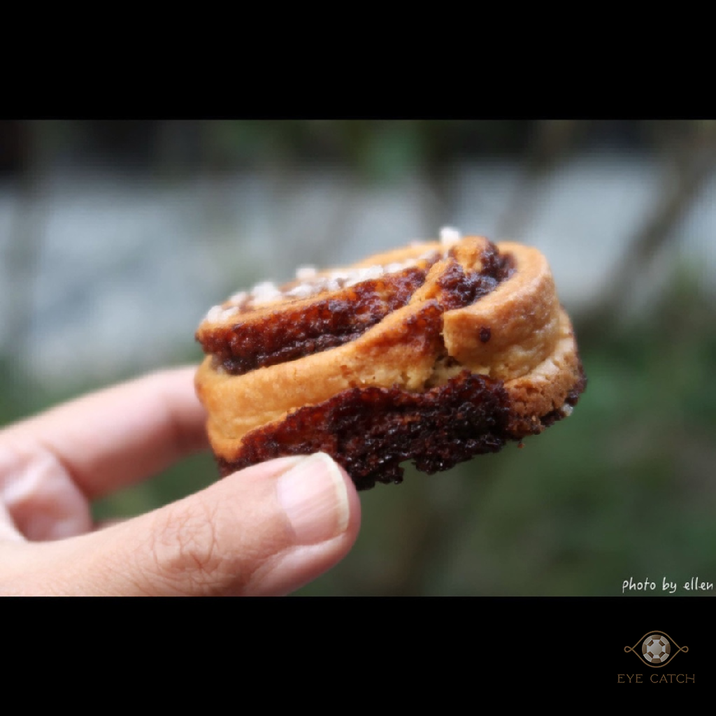 肉桂司康做成螺旋狀, 層層都有肉桂糖, 介於司康與奶油酥餅之間, 若不把它當成司康來看我蠻喜歡~ 達克瓦茲表層薄薄酥脆, 開心果奶油和開心果醬甜度略高, 酸櫻桃醬酸味十足, 襯托開心果特有的味道! 可麗露退冰後外殼仍保有脆度, 不會太厚, 裡面孔洞分布均勻, 濃郁香草味還有蘭姆酒, 越嚼越香
