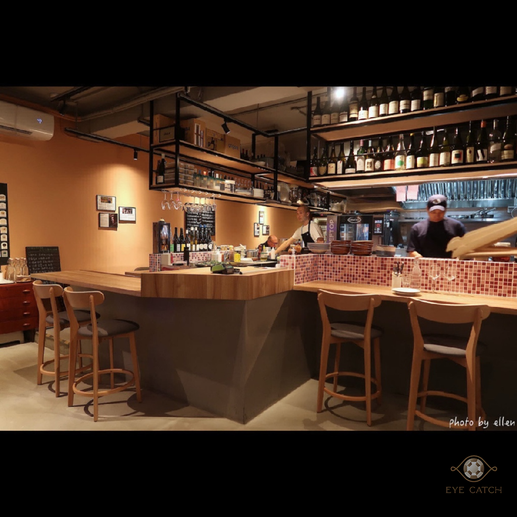 沒去過藝文特區那間無從比較, 但經國特區這間因為開在新大樓一樓, 空間挑高裝潢時尚蠻有質感, 除了中間一張可坐12人的大方桌, 其餘雙人與四人桌分佈四周, 吧台兼櫃檯和廚房佔據一角, 整體混合歐風與日系感~ 想聊天氣氛好不打算用餐可選圓桌, 圓桌面積不大, 吃早午餐會小擠