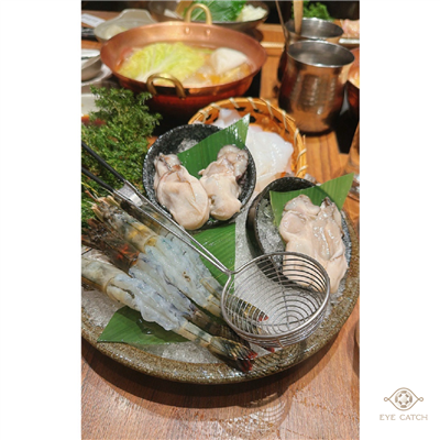 走進這間日料店的瞬間,彷彿誤闖了海底世界。幽藍的光,懸浮的水母裝置在空氣中緩緩呼吸,像是被海神施展魔法,一秒把人拉進深海劇場。