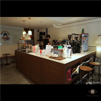 沒去過藝文特區那間無從比較, 但經國特區這間因為開在新大樓一樓, 空間挑高裝潢時尚蠻有質感, 除了中間一張可坐12人的大方桌, 其餘雙人與四人桌分佈四周, 吧台兼櫃檯和廚房佔據一角, 整體混合歐風與日系感~ 想聊天氣氛好不打算用餐可選圓桌, 圓桌面積不大, 吃早午餐會小擠
