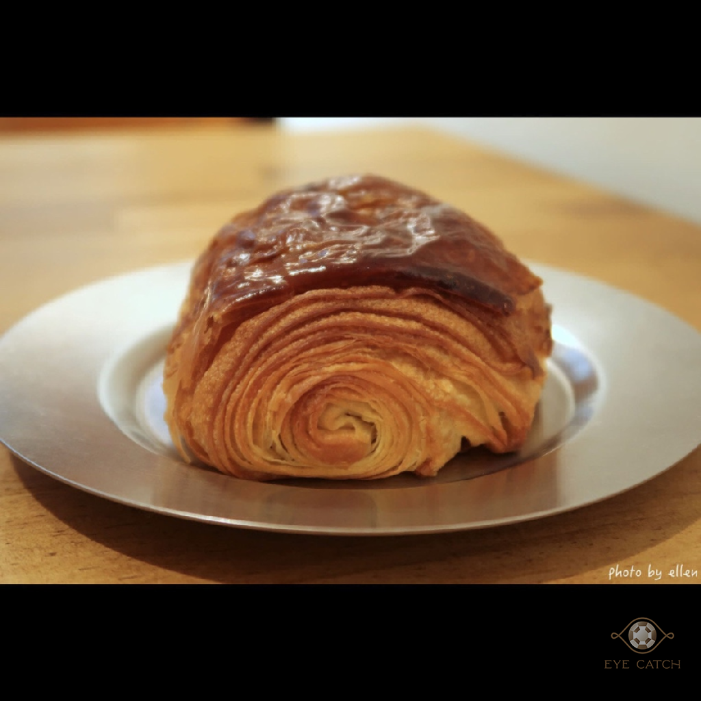 除去綠色顏色太鮮艷讓人怕怕, 意外的開心果奶油味道蠻不錯! 巧克力可頌中間巧克力少, 不是帶苦味而是偏甜, 普通; Kouign Amann摺痕線條清楚, 和巧克力可頌相比我更喜歡這款的表現