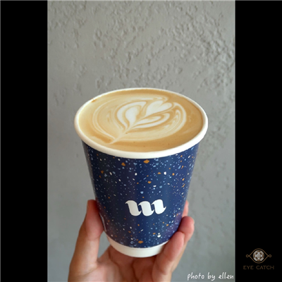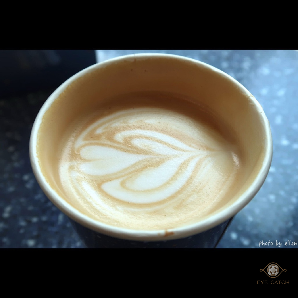 點了一杯熱拿鐵, 來之前打算外帶, 臨時改變主意詢問店員可否在店裡喝完? 她說沒問題, 於是麻煩她不要蓋蓋子想當場喝! 奶泡綿密香濃, 咖啡偏苦帶酸, 融合得挺好, 是我喜歡的拿鐵風味, 5分鐘解決(笑)