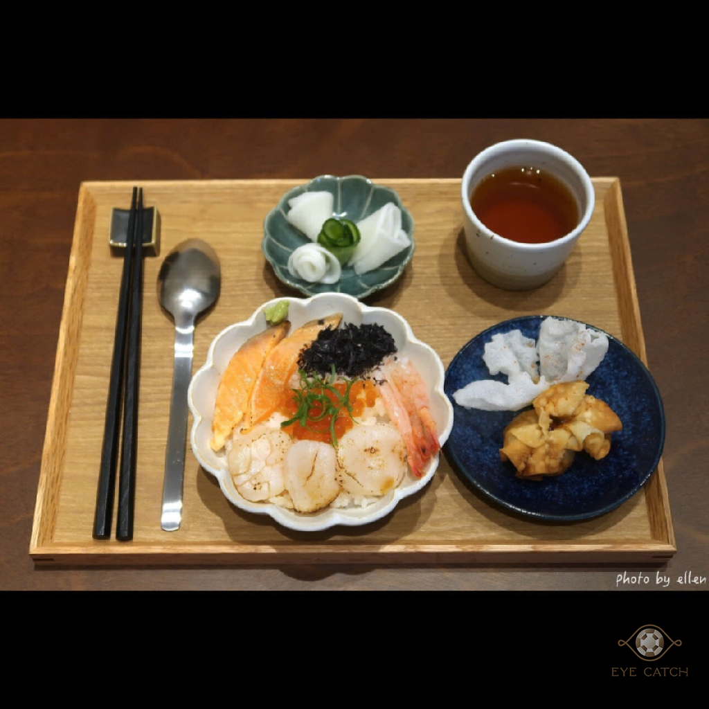 初訪和朋友來吃午餐, 點了: 旗魚天婦羅, 炙烤櫛瓜, 醬漬鮭魚卵套餐, 綜合海味魚生套餐, 還被老闆招待了提拉米蘇和焦糖布丁