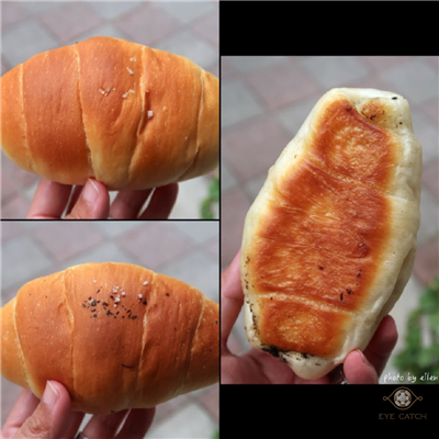 塩可頌底層奶油焗到酥, 中間麵包體偏軟, 整體奶油香氣足, 黑松露這款的松露味明顯, 回烤再吃口感更好! 肉桂捲扭結造型烘烤顏色漂亮, 縫隙間的肉桂糖更是誘人, 肉桂香氣濃郁, 甜度夠且不過甜, 麵包體像是布里歐又帶有一點近似丹麥層次, 鬆軟不乾硬