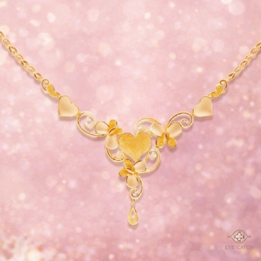 這款「浪漫黃金項鍊」。本款商品一兩以上,重量感十足,線條卻依然柔美,細緻雕出盛開玫瑰與葉瓣,像是將浪漫瞬間凝結在頸間。走進婚宴、派對或拍攝婚紗,無需大聲宣告,氣勢自然盛放。