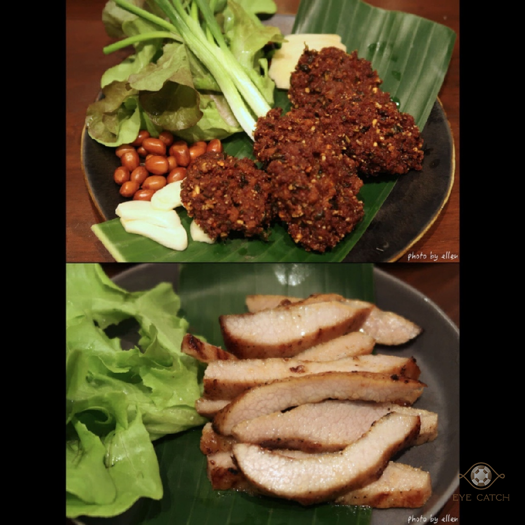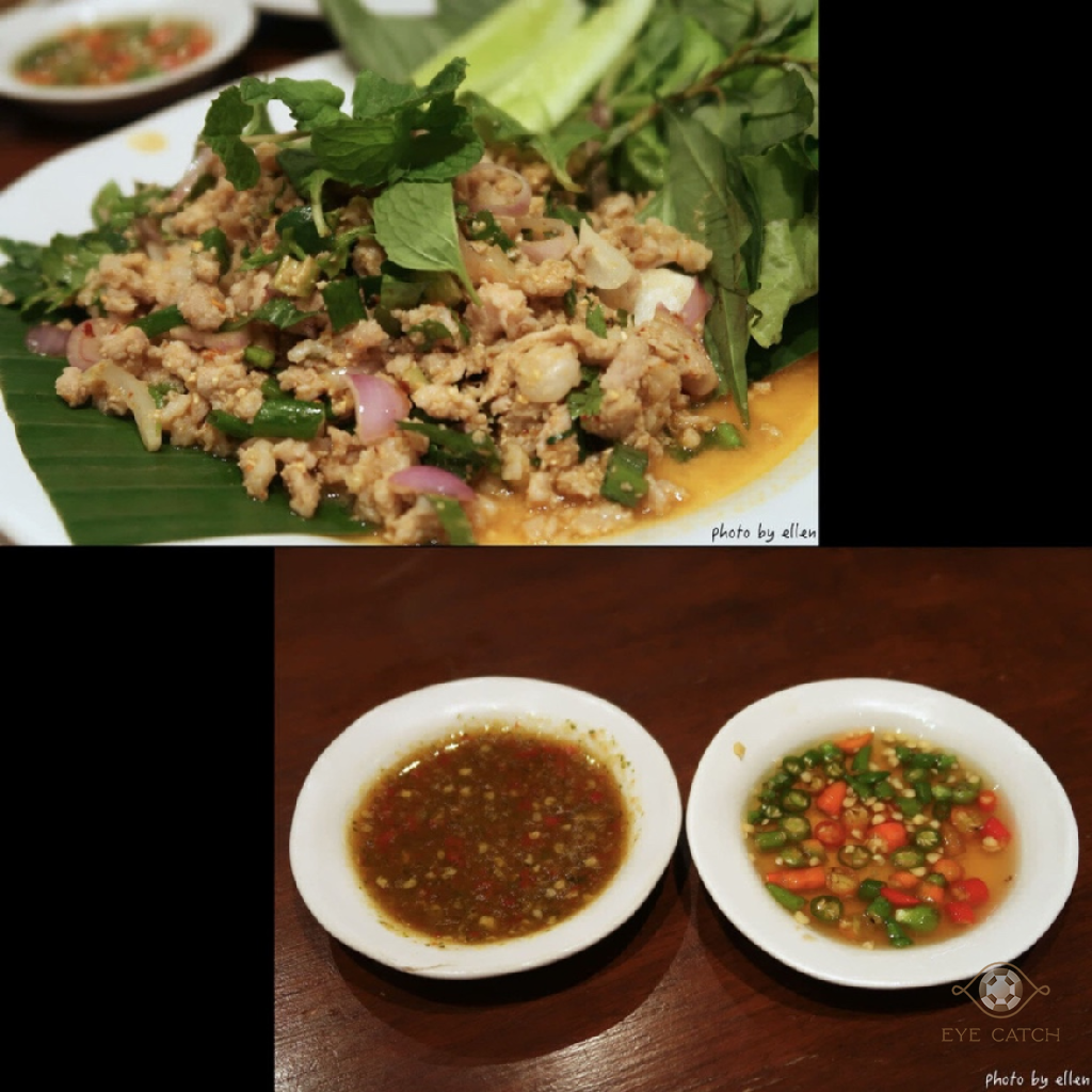 那天我們一行五人點了: 龍眼汁, 菊花茶, 炸米諾魚, 東北香辣牛肉湯, 炸雞翅, 青木瓜沙拉, 老撾式柚子沙拉, 冬陰功湯, 炸酸辣豬肉碎, 涼拌豬肉末沙拉, 烤豬頸肉
