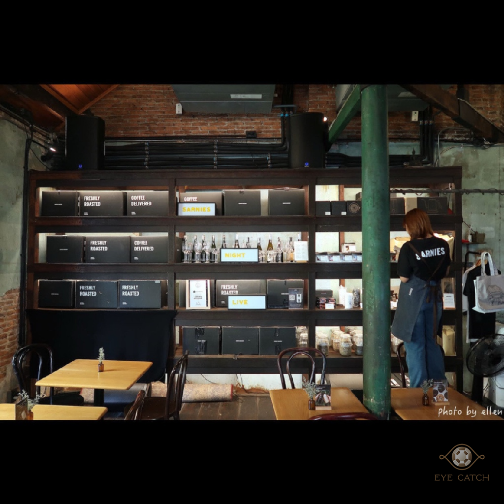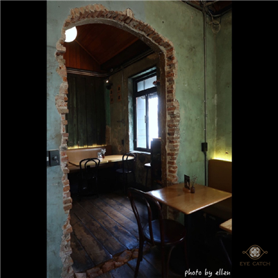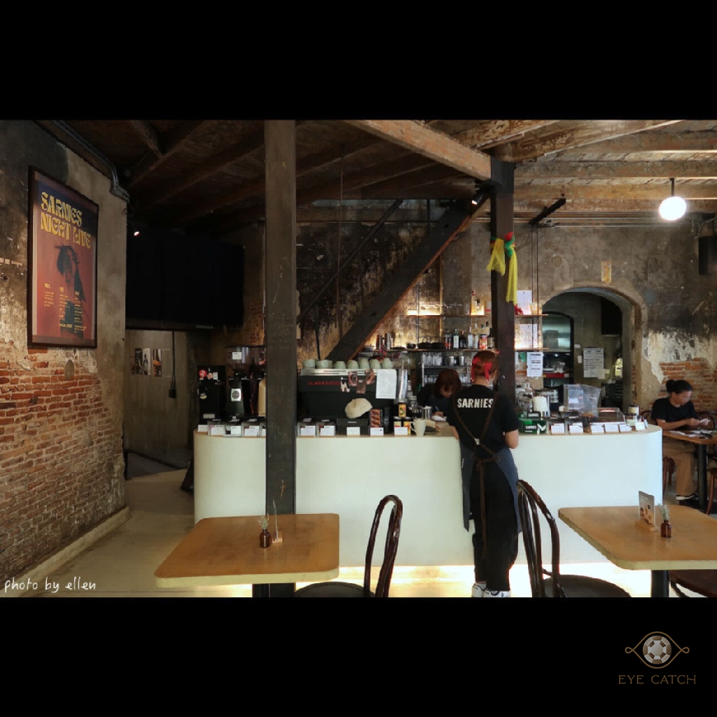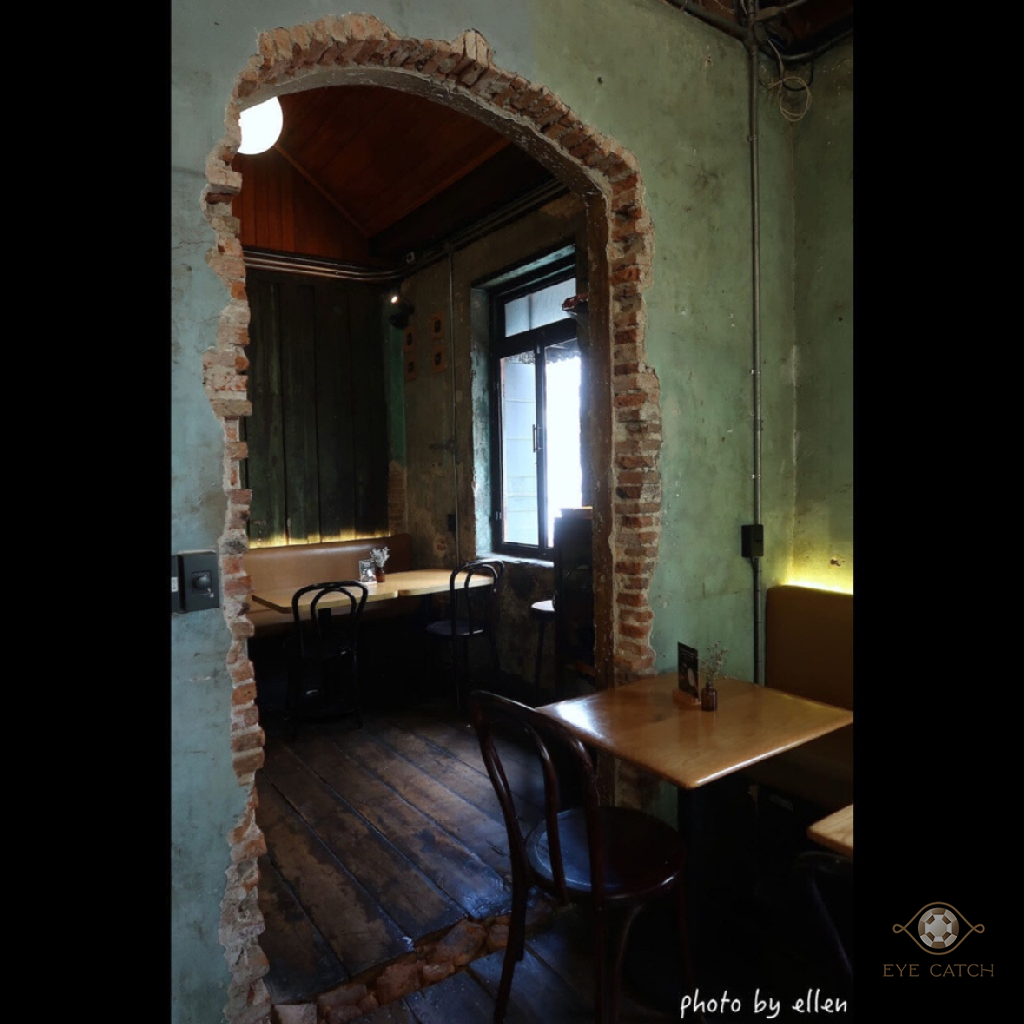 從BTS Saphan Taksin站走過來約5分鐘, Sarnies BKK鄰近湄南河與渡輪碼頭, 保留大部分建築物原始風貌, 帶廢墟感, 因在巷弄裡往來人車不多, 悠閒愜意, 內部空間經過整理仍看得出來有點年代, 門廊窗戶皆是拱形設計