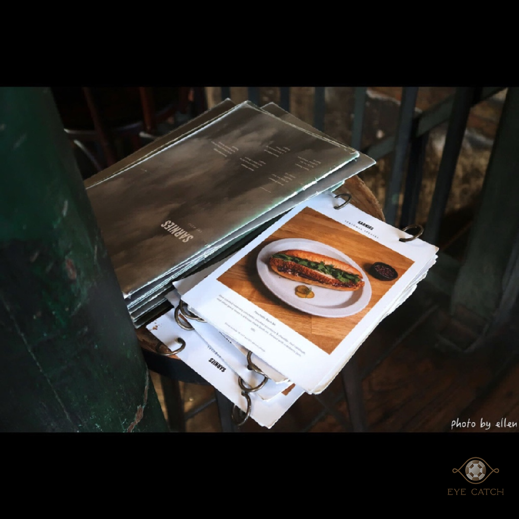 一樓空間不大約可容納20人, 二樓還有座位, 樓梯滿陡上下需小心, 粉刷不均的牆面與刻意裸露出來的紅磚牆, 很有味道, 除了供應澳式早午餐, 還有賣沙拉三明治披薩與義大利麵, 特別的南洋風味餐點像是泰式早餐瑪芬還有越南banh mi等等皆是特色, 對了, 菜單上的價格需另加17%稅金與服務費