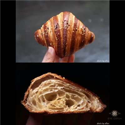 第一次見到將可頌做成Pretzel口味挺有意思, 以為只是調味像, 沒想到連鹼味都有表現出來! 可頌孔洞大十分柔軟, 外層酥鬆, 即使不說是Pretzel也感受得出來像Pretzel, 比預期好吃很多