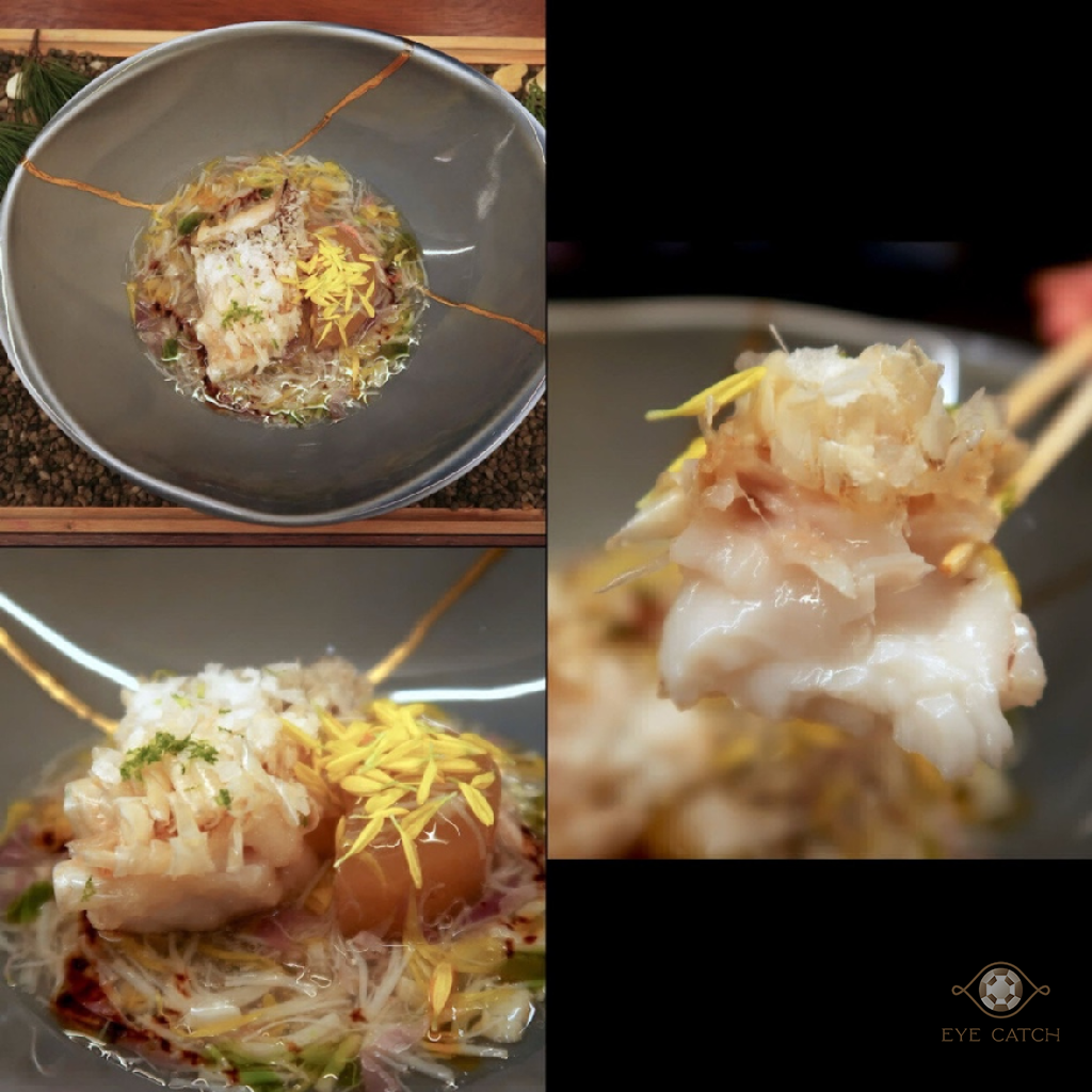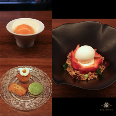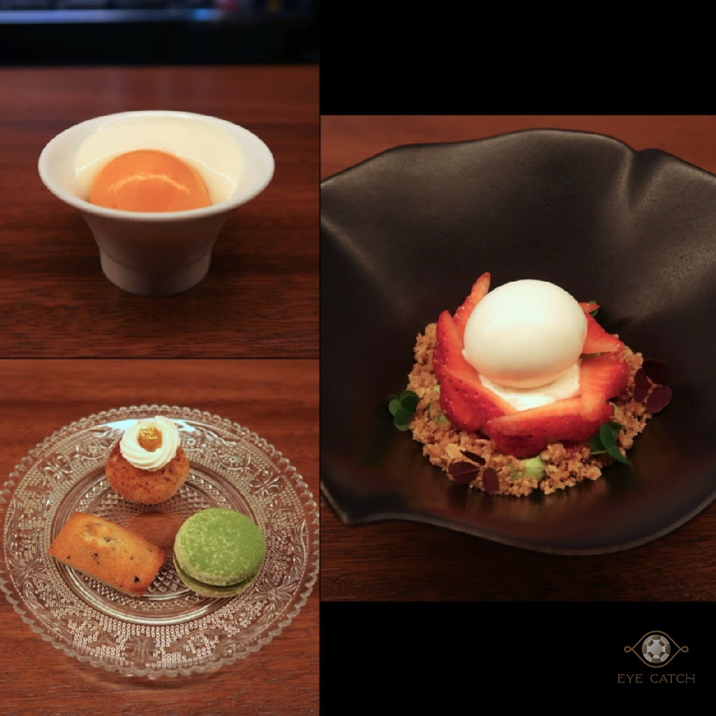 當日有: 黑雞湯, 牡丹蝦韃靼, 蘆筍韃靼, 鮭魚韃靼, 牛奶麵包, 海膽, 甘鯛, 雞肉捲蔥薑, Abura Bozu 飯料理, Sea Buckthorn, 草莓清酒冰, petit four