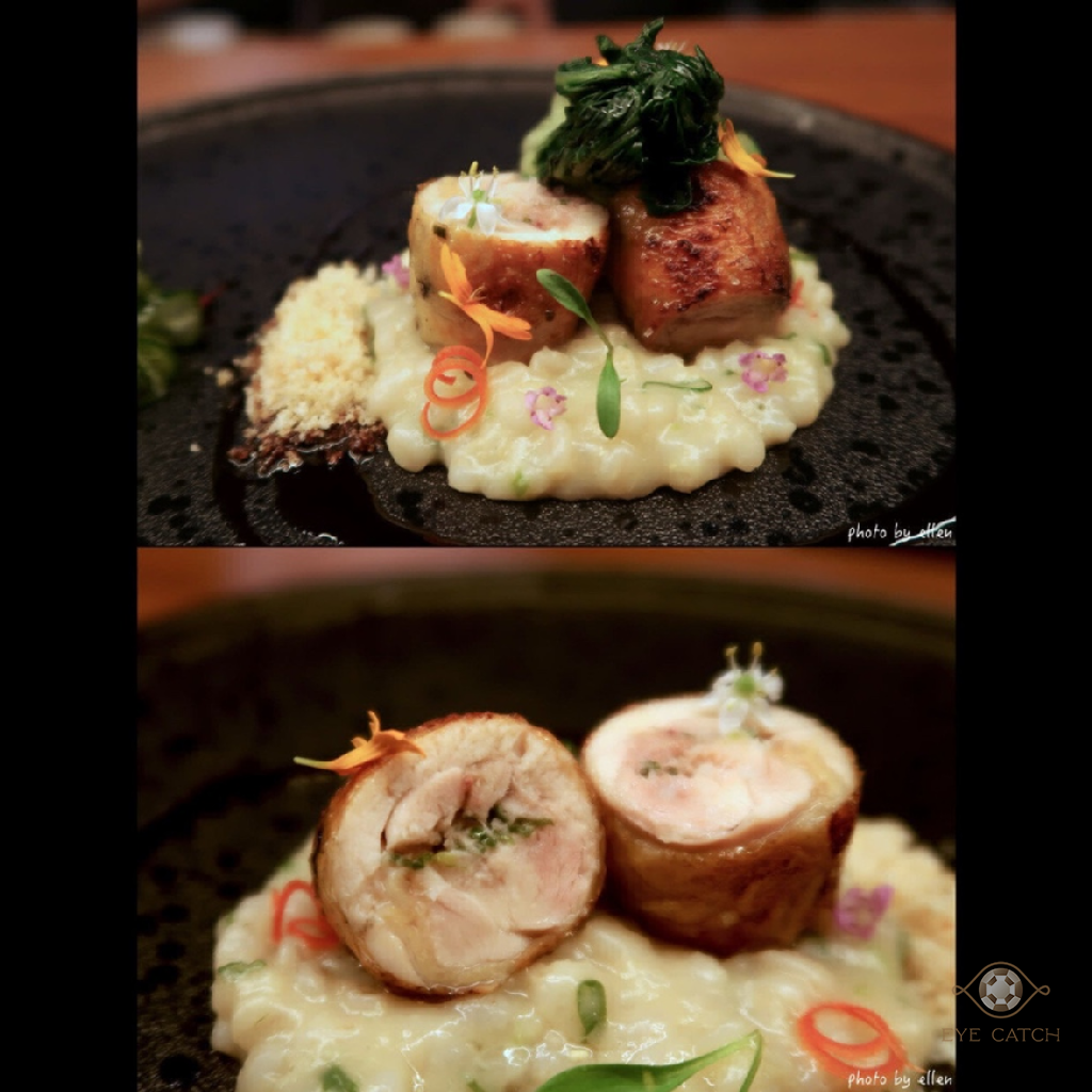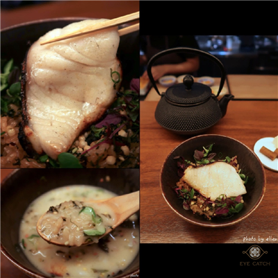 主廚融合在地特色所創菜單蠻有意思, 像是海南雞飯為概念的雞肉捲, 很像蟹肉羹的甘鯛等等, 印象最深的是飯料理, 滿滿魚鮮味, 乾吃好吃變粥也很讚, 魚皮黏黏脆脆QQ非常美味
