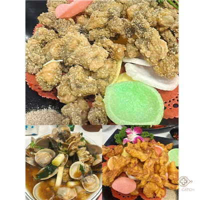 夜色降臨,我們驅車前往烏石港晚餐。白斬雞油亮上桌,蛤蜊熱炒滋滋作響,白鯧魚米粉鍋冒著熱氣,炸肉條配啤酒🍻