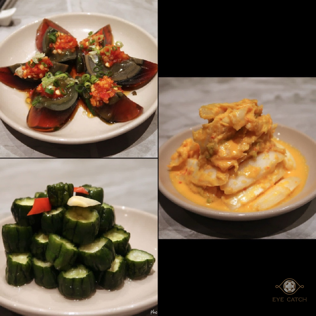 茶資每人50, 那天我們吃了: 剁椒釀皮蛋, 涼拌小黃瓜, 黃金泡菜, 片皮鴨兩吃(片鴨&芋頭鴨架米粉湯), 廣式清湯佛跳牆, 酸椒金湯花鮫筒, 一品海鮮豆腐煲, 鎮江陳醋牛筋腩, 蒜炒港芥蘭, 山楂糖醋咕咾肉, 嗆炒櫻花蝦白菜芽, 椒麻脆皮豆腐, 蘿蔔絲酥餅, 臘味蘿蔔糕, 豉椒蒸鳳爪, 豆豉蒸排骨, 豆沙芝麻球, 棗皇銀耳燉桃膠