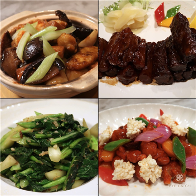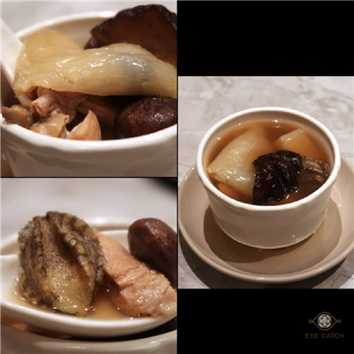 對兩道羹湯和陳醋牛筋與咕咾肉還有椒麻脆皮豆腐留下較深刻的印象, 尤其羹湯裡的花膠真的讚! 片皮鴨特別的是配料有鳳梨, 特製甜麵醬加了金棗, 餅皮加蕎麥子, 一點也不突兀, 意外和諧
