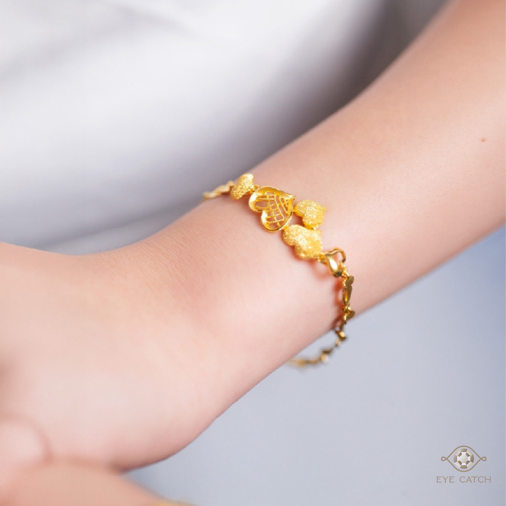 耳環小巧可愛,也不會太高調;戒指立體愛心造型,手指一抬就有亮點;手鍊則以愛心串連,手腕動作間閃出溫柔光澤。