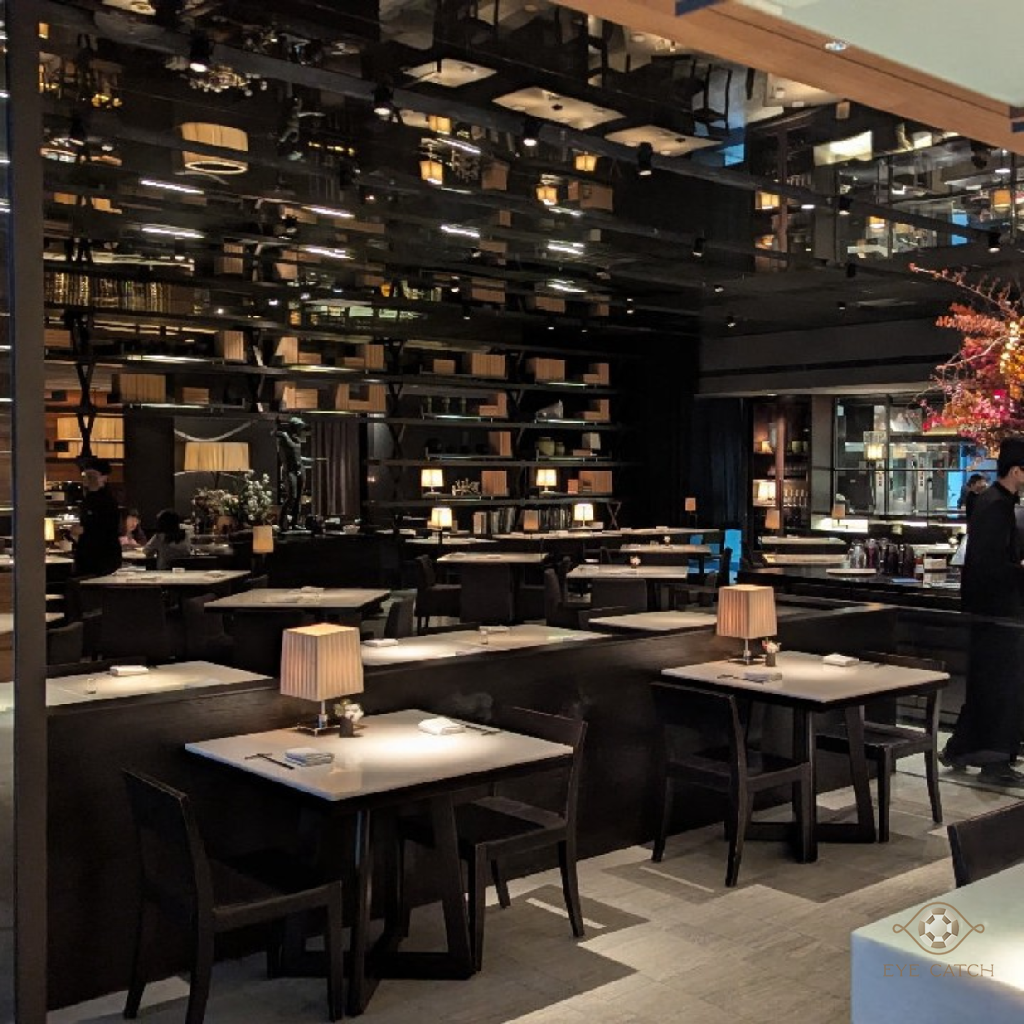 整體氛圍沉靜典雅,黑色及大理石的淺米色是主要的色調,再以木頭的棕色點綴其中,搭配各種書籍等等的擺飾,讓人不由自主的也安適下來。