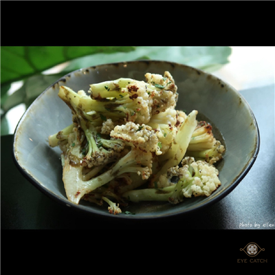 點了: 香草青瓜梳打, 香脆炸蠔, 香烤椰菜花配紫菜油醋汁, 芝士青蔥粗管通粉+培根&櫻花蝦; 蘇打飲料青瓜羅勒蒔蘿味道夠濃氣也足