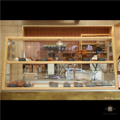 空間小巧可坐8人左右, 桌椅設計挺有趣, 檯面稍窄不能放太多東西, 後來發現圓形窗戶是可以打開的, 外帶直接在窗外點餐即可