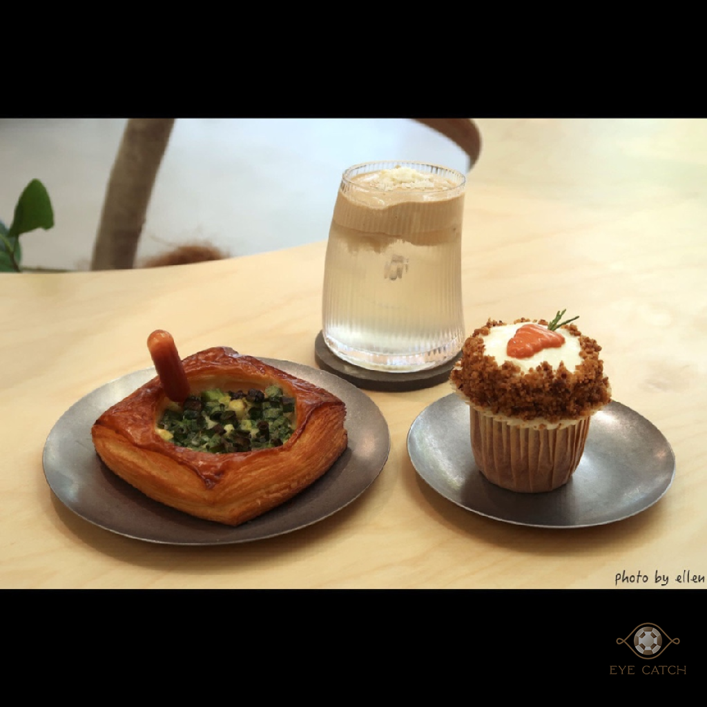 我點了咖啡奶油椰子&香蔥鵝油丹麥佐東泉辣椒醬&胡蘿蔔杯子蛋糕, 一甜一鹹一飲料剛剛好!
